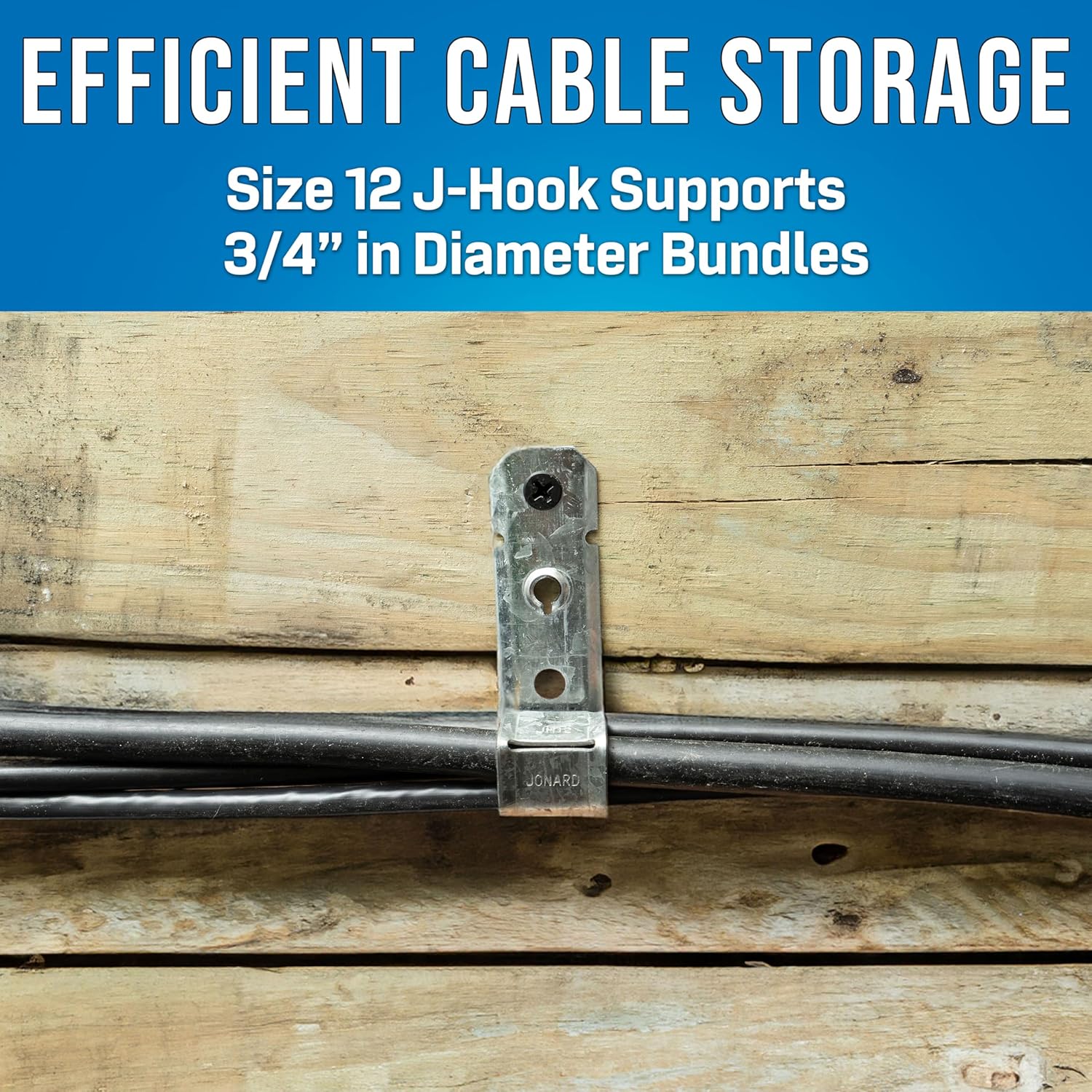 Designed for heavy-duty hanging applications, these J hooks provide stress-free cable support while keeping your cable bundles neat and organized.These J hooks also feature the following:- Size 32 for cable bundles up to 2" in diameter, and a maximum load capacity of 60 lb (27.2 kg)- Max number of 4 pair UTP CAT5E cables it can hold: 80- Max number of 6 pair UTP CAT5E/CAT6 cables it can hold: 50- Retainer clip for securing cables- UL® listed and complies with NEC® and TIA requirements for structured cabling systems.