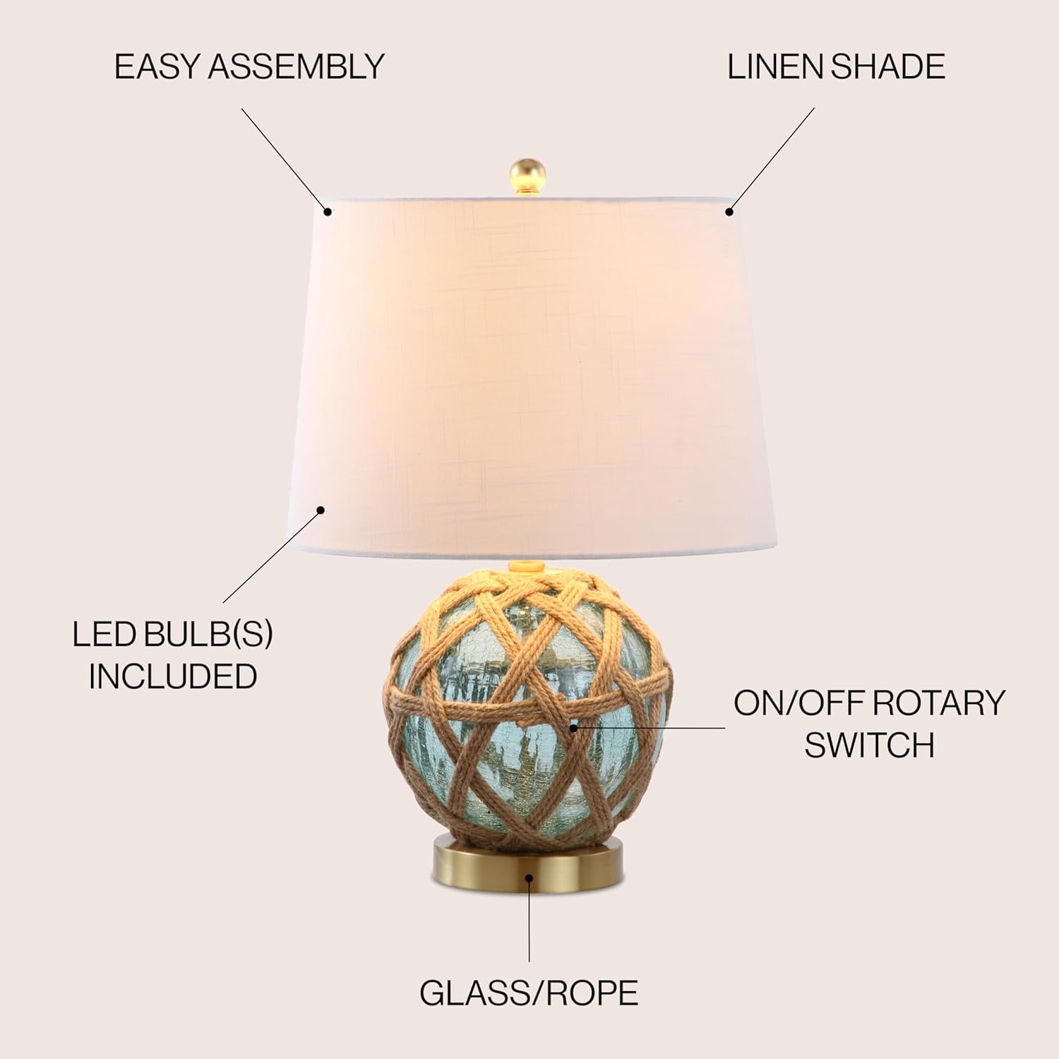 | Item Type Name | Andrews 21.5" LED Glass/Rope Table Lamp Coastal Contemporary Bedside Desk Nightstand Lamp for Bedroom Living Room Office College Bookcase |