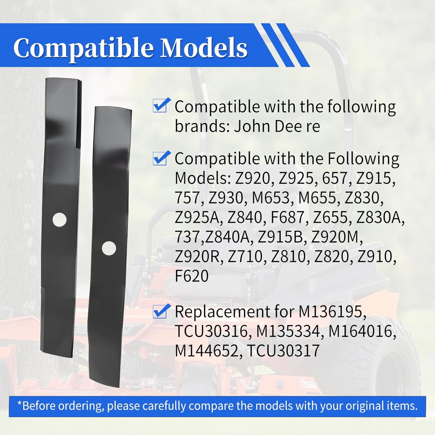| Item model number | M136195 Mower Blade |
