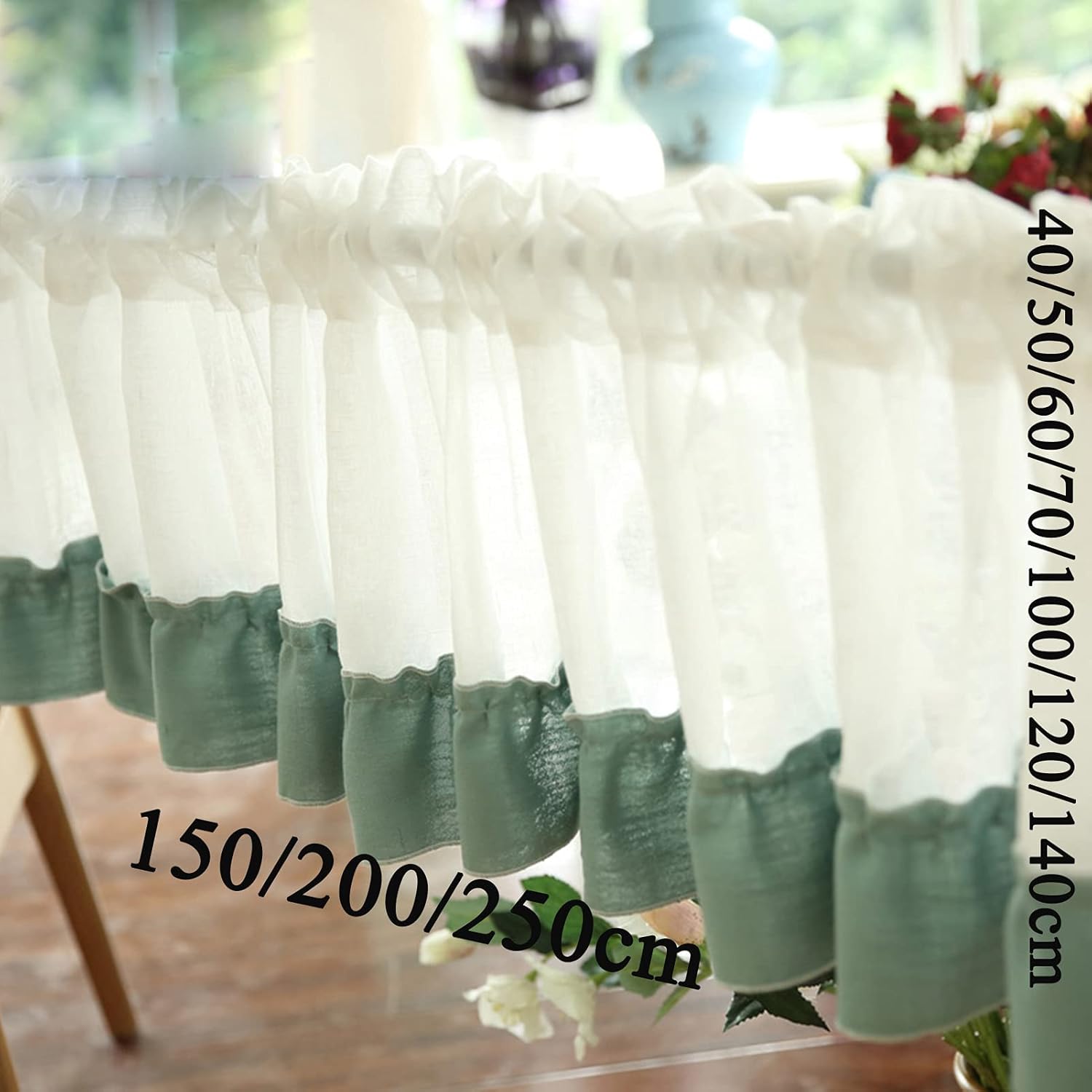 ◆◆◆ Made of high quality super soft cotton fabric, exquisite workmanship, wooden ear edge design, elegant and romantic, can be used as curtains, kitchen curtains, cafe curtains, room dividers or wall decorations. The best choice for decorating the kitchen, home or business. ◆◆◆ It lets in sunlight while providing a degree of privacy, making the room light, romantic and airy. ◆ product specifications -Name: Cafe Curtain -Material: 100% cotton -Color green -Size: 150X40cm, 150X50cm, 150X60cm, 150X70cm, 150X100cm, 150X120cm, 200X40cm, 200X50cm, 200X60cm, 200X70cm, 200X100cm, 200X120cm, 250X40cm, 250X50cm, 250X60cm, 250X70cm, 250X100cm, 250X120cm -Package: 1 piece, no accessories ◆ Notice * The size is the unfolded size, if you need to fold, please try to buy a large size * Due to manual trimming, please allow 2-3cm difference. * Since the small curtains are lighter in color, please do not wash them with dark clothes. * Hang after washing and ironing. ◆ service We offer 24 hour customer service. If you have any questions, please contact us immediately.