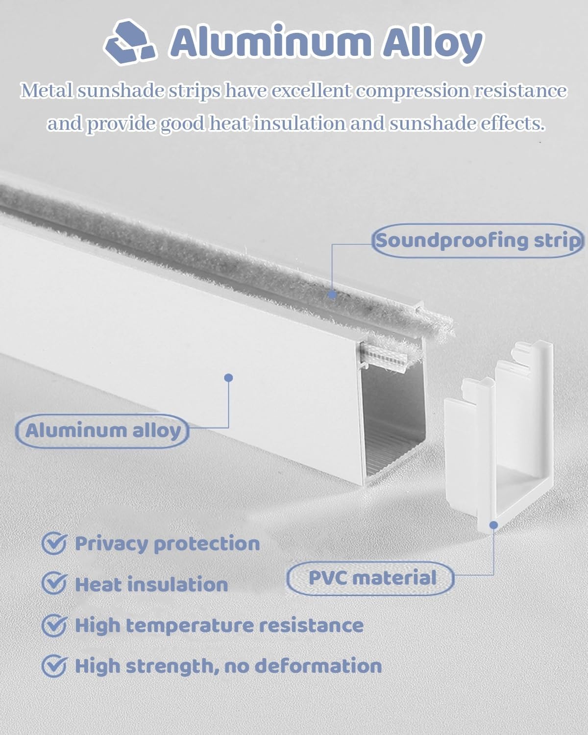 With just a single pull, you can easily darken your room, creating a serene environment perfect for restful sleep or focused work. **Product Specifications:**- **Material:** Durable Aluminium Alloy- **Color Options:** Choose from White, Gray, or Black to match your décor.- **Adjustable Length:** Ranges from 27.9cm to 248.9cm (11 to 98 inches) to fit various window sizes.- **Width Requirement:** Suitable for roller blinds less than 1.27 cm (0.5 inches).- **Installation Depth:** Requires a window depth greater than 2.54 cm (1 inch).- **Distance Compatibility:** Works within a 0.5-3.81 cm (0.95-1.5 inch) range.- **Included:** All necessary screws for installation.**Key Features:**- **Light Blocking:** Effectively blocks up to 97% of light, ensuring your space stays dark when needed.- **Versatile Design:** Blends seamlessly with any home or office interior.- **Customizable Fit:** Tailored sizes guarantee a perfect match for your windows.- **Privacy Protection:** Enjoy reduced visibility from outside, enhancing your private space.- **Easy Installation:** Designed for simplicity, even beginners can install these blinds with ease.**Package Includes:**- 2 Light blocking strips- All essential accessories for setup**Important Notes:**- Ensure windows are installed vertically for optimal performance.- Seam sealant (not included) can be used for a flawless finish.- Slight size variations may occur due to manual measurements.- Color discrepancies may arise based on lighting and screen settings.**Customer Support:**We prioritize your satisfaction. If you have any questions about our roller blinds, don’t hesitate to reach out to us for assistance.