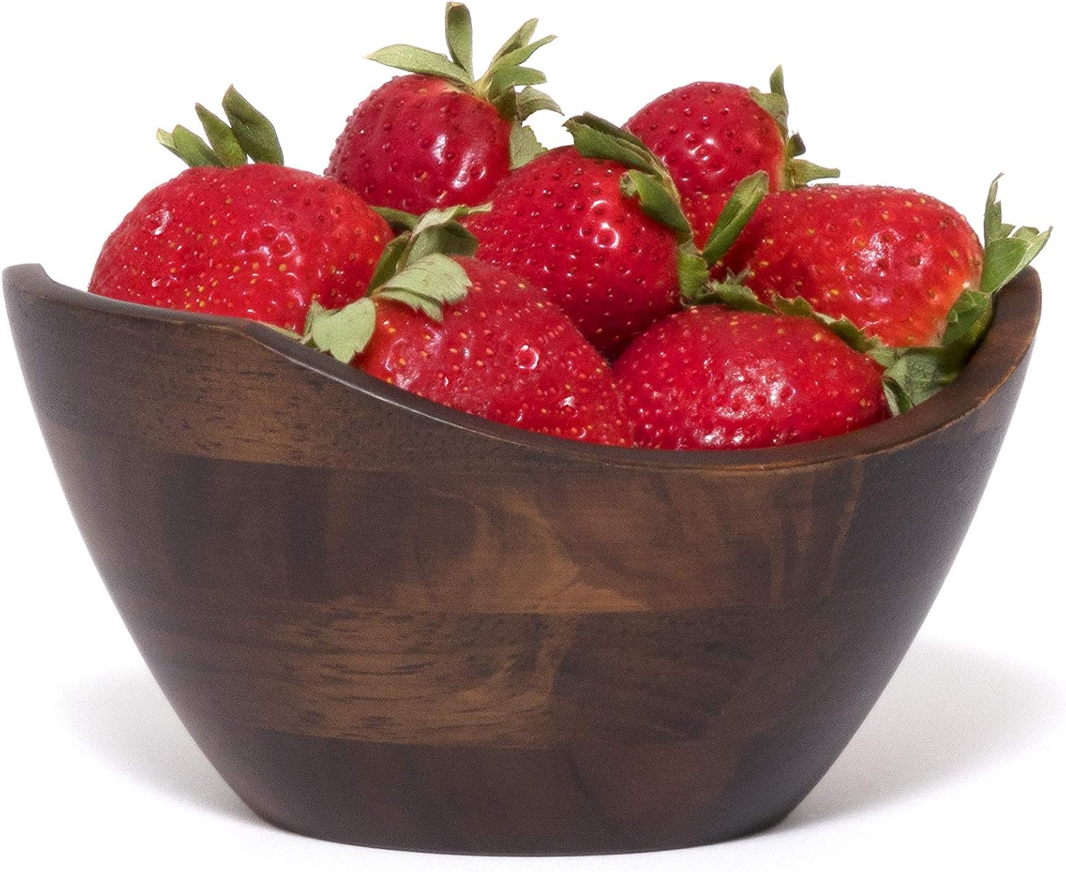 Serve your salads in style with this Walnut Finish Small Wavy Rim Bowl. A rich, dark walnut finish adds modern elegance to this gorgeously crafted wavy rim bowl made of natural Asian Beechwood. This bowl is generously sized and beautifully shaped with a wave rim. It is perfect to serve salads, fruits, or to be set as a centerpiece bowl on your dining table. This wavy rim bowl has a classic, yet contemporary, style. The Walnut Finished Wavy Rim Bowl, Large 13" is also available in a Small 7. 5" size Item #293WN, that is perfect for individual servings of salad, fruit, pasta or snacks.