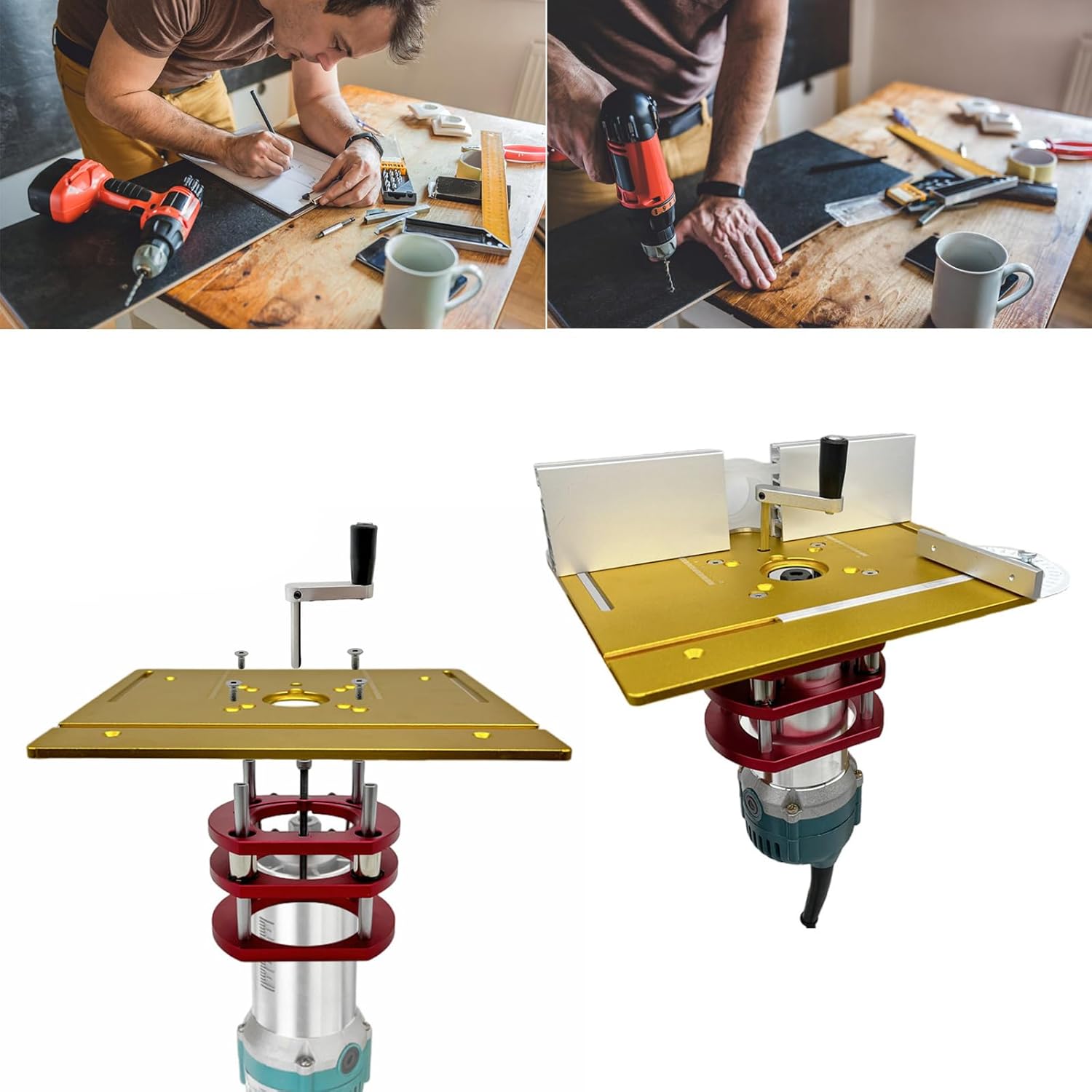 Long Service Life Milling Table for Router Insert Plate Easy Tool Positioning Grooving and Chamfering Milling DeviceFeatures:Our router lift table and our router table insert plate can use together with the router router table for various applications such as edges trimming, deburring and woodworking.Craft from aluminum alloy, our router lift table is rust and providing long service life.With a lifting height of up to 51mm and supporting small edges routers with diameters between 64mm and 66mm, our router lift table is suitable for a variety of woodworking needs.Easily and precisely adjust the height of the router with the handle to raise or lower the clamp for precise tool positioning. Our router lift table is the to make your woodworking projects more precise and professional.Specifications:Component:Aluminum AlloyMilling Lift Size:Approx.13x13cm/5.12x5.12inchBase Plate Size:Approx.200x240mm/7.87x9.45inchPackage Includes:1pc Milling Lift1pc Base Plate1pc Handle4pc Screw1pc ToolNote:Please allow 1mm errors due to manual measurement. Due to the differences between different monitors, the picture may not reflect the actual item color.