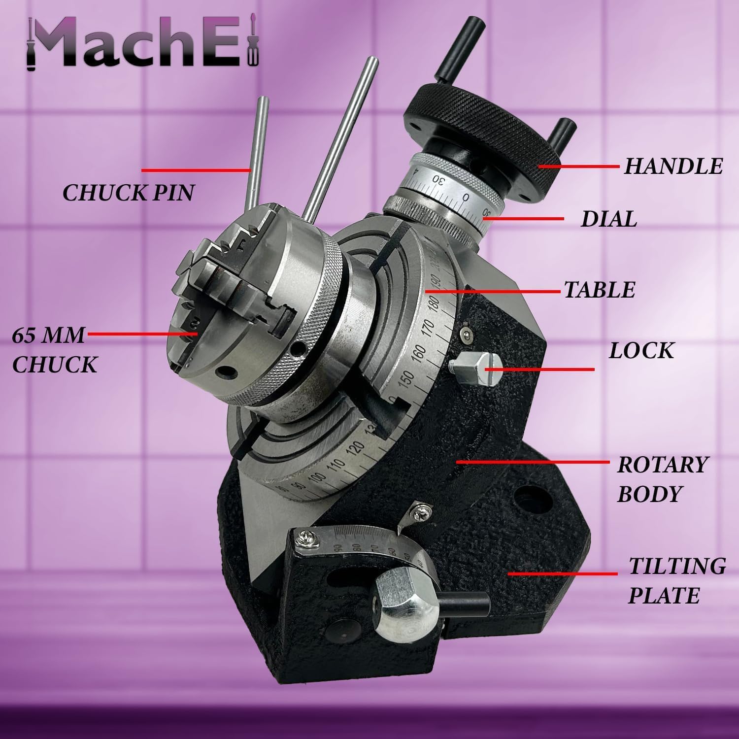 | Included Components | 4" Inch Tilting Rotary Table & 65 mm 4 Jaw Self Centering Chuck with Back Plate & Fixing T nuts |