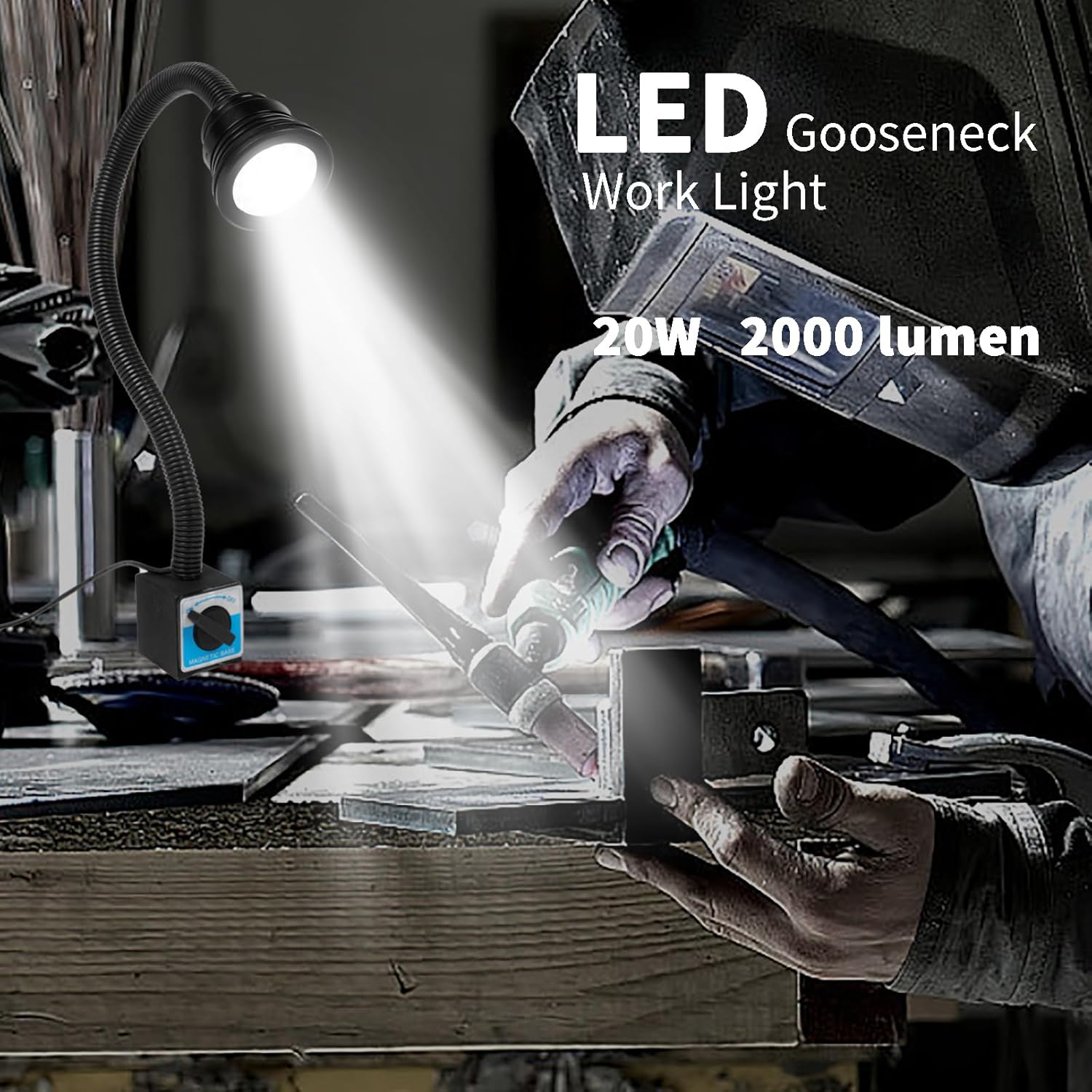 LED Magnetic Light, 20W Magnetic Lathe Light, IP66 WaterProof Led Machine Light 2000 Lumens for Lathe Lighting Milling Machine, Drill Press Lighting (20W)