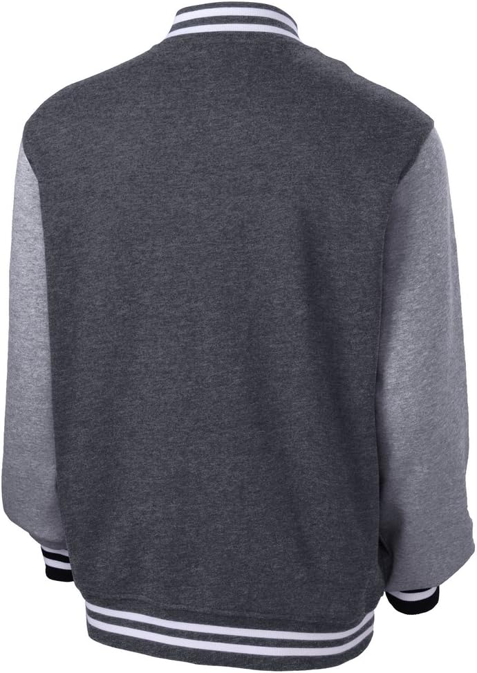 We took the traditional letterman jacket and reworked it in warm, comfortable fleece for a winning look. Classic letterman jacket features 2x2 rib knit collar, cuffs and hem with spandex, Snap front closure, and Front slash pockets. Made of 9-ounce, 65/35 ring spun combed cotton/poly fleece. Available in XS to 4XL.