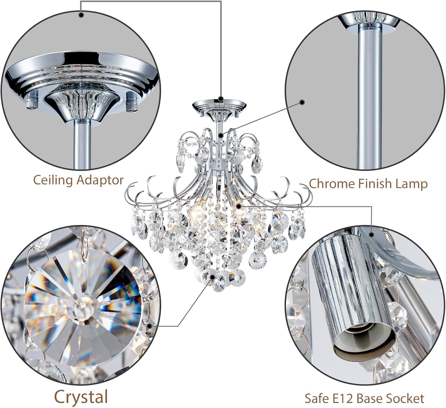 | Included Components | Crystal string, Curved arm, Hanging rod/Lamp body, Mounting bracket & Canopy, Screw and plastic plugs |