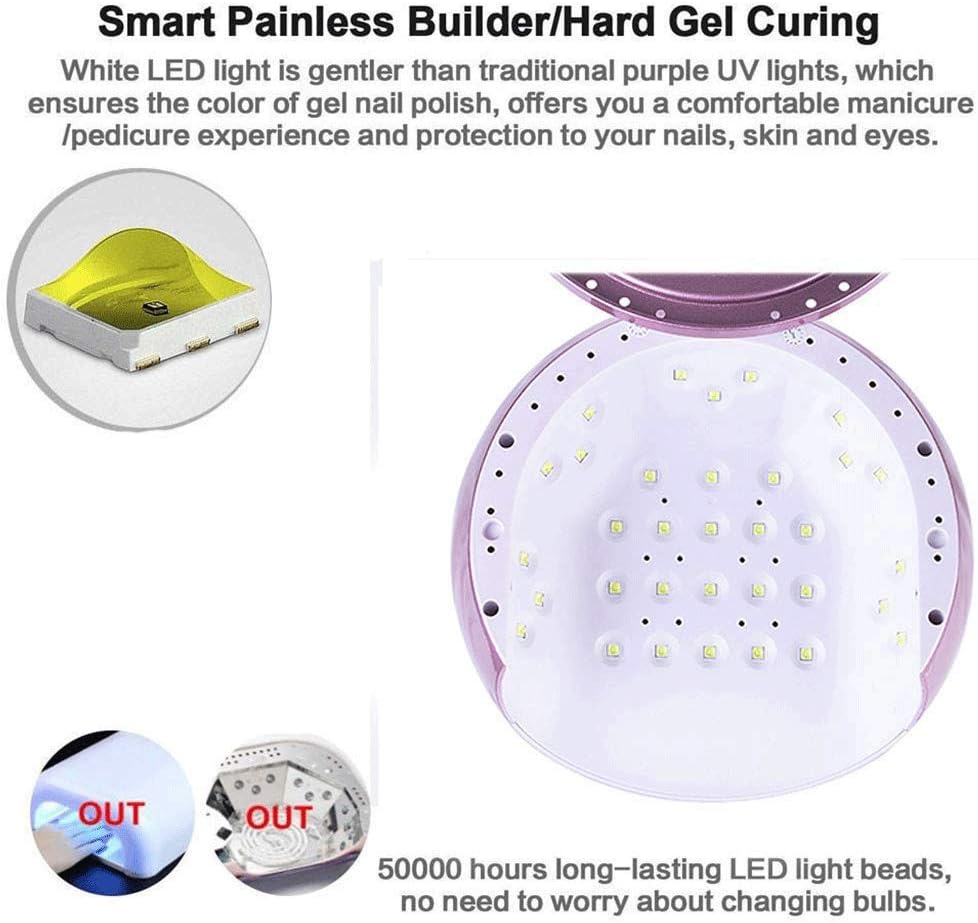 UV Nail Gel Curing Lamp Light Nail Gel Polish Dryer Nail Art MachineDescriptionType LED UV Lamp Length 365nm+405nmUse Life 50000hoursAdapter: Rated input 110-240V 50/60Hz ; Rated output 24V 1.5AMore features:Intelligent and easy to use nail lamp. The machine has a auto hand infrared sensor. It will automatically start when hands get in and automatically shut down when hands out or timer finish.Great for home and salon sue. It is comes with 33 pieces 50000hrs LED beads. Fashion design and large enough room to make it easier to curing 5 fingernails. Great for both home and salon use. The light emitted from this nail lamp is closer to white light which does not harm your eyes or skin.
