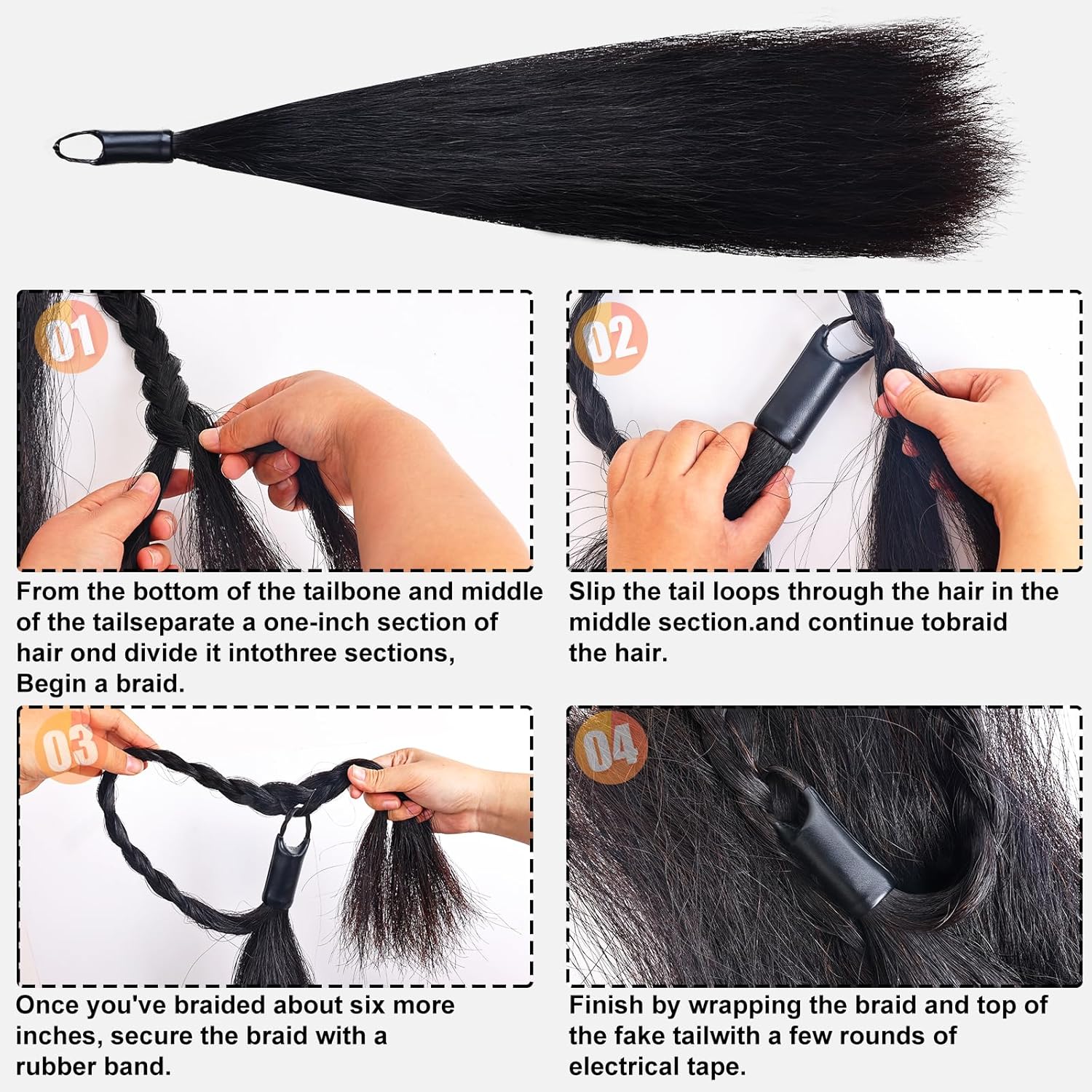Product HighlightsCrafted from 100% authentic undyed natural horse hair in natural black, this horse hair tail extension is chemical-free and blends seamlessly with your horse’s original tail for a genuine look. Weighing 4/8 lb (0.5 lb), it adds ideal fullness without straining the tailbone, ensuring a natural and balanced hang.Featuring a built-in braided loop, this premium horse hair extension allows quick, tool-free installation—perfect for beginners and stays secure in various scenarios like rides or shows. It’s low-maintenance and durable: simply brush the horse hair gently to avoid tangles, clean with mild products to retain its softness and luster for long-lasting use.Not only does this horse hair tail extension boost tail fullness and neatness to elevate your horse’s elegance in competitions and daily grooming, but it also enhances the overall aesthetics, making your horse stand out with a polished appearance.