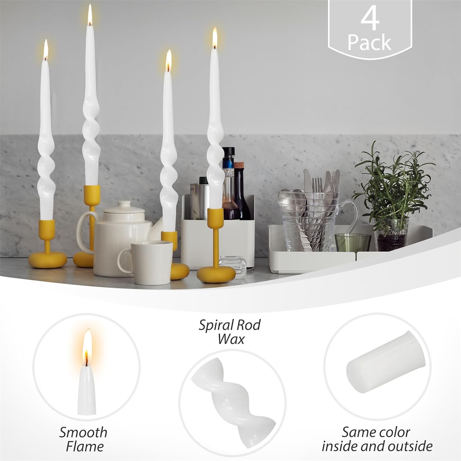 Unscented Candle Timeless Elegance: Elevate your space with the timeless allure of tapered candles; their slender profile and graceful swirl shape exude sophistication; casting a gentle glow for any occasion Pastel Candles Premium Quality: Made from refined paraffin; ensures a clean and steady burn that lasts for 6 hours; warm, dancing flame offers a delightful ambiance; showcases superior craftsmanship of our meticulously made candles Twirl Candles Multi Use: Perfect for decorative and practical purposes; ideal for weddings, dinner parties, religious ceremonies, and home décor; add a romantic glow to your evenings; elevate your space with the timeless charm of white candles sticks Handmade Wavy Candles: Each Artistic Candle is unique; ocean ripple shape, making them suitable for any interior design style from Scandinavian minimalism to colorful boho settings; elevate your space with the timeless allure of Spiral candles Candle Ideal Selection for All Occasions: Looking to bring a warm and elegant touch to a loved one’s or friend’s home? Our Twisted Candlesticks are perfect for housewarming celebrations, birthdays; enhancing any space with their inviting glow