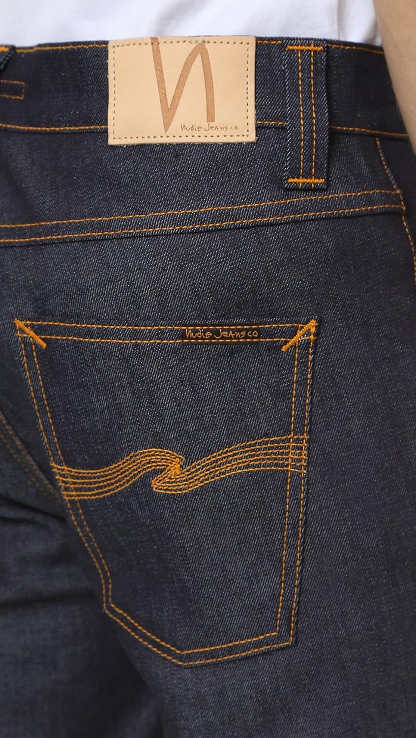 Jeans made in comfort stretch denim. Like the name implies, this dry, deep blue, option has been through 16 indigo dips. Unlike other stretch denim, these are not rinsed, so they are stiffer, and will shrink a bit more. Account for inseam shrinkage of 2 percent and 4.5-6 percent in width. Thus, sizing down is not recommended.