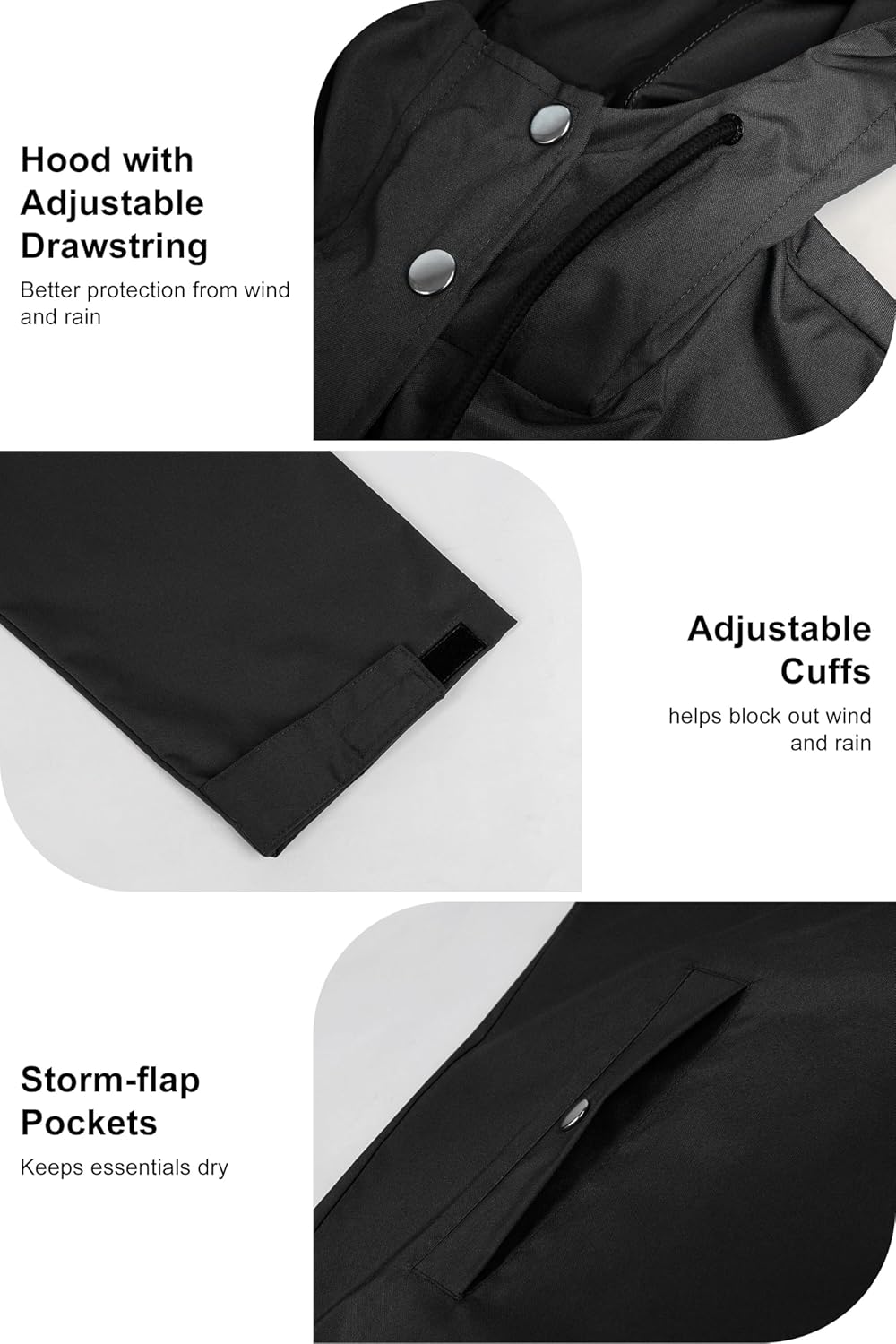 Stay Dry, Stylish, and Ready for AdventureDon't let unpredictable weather ruin your plans. Our Packable Waterproof Rain Jacket for women is engineered to be your go-to outer layer, offering reliable protection without sacrificing style or comfort. Whether you're hitting the trails, exploring a new city, or heading to work, this jacket ensures you're prepared for whatever the day brings.All-Weather Protection:Crafted from high-performance waterproof fabric with sealed seams, this jacket effectively repels rain and snow. Ultra-Lightweight & Packable:We believe the best jacket is the one you have with you. That’s why this jacket packs down into its own built-in pouch, becoming incredibly small and light. Stash it anywhere and be always prepared for a sudden change in weather.Perfect For A Multitude Of OccasionsThis is more than just a raincoat; it's an essential piece for your active lifestyle.Outdoor Adventures: Hiking, camping, cycling, fishing, backpacking.Unexpected Weather: The perfect emergency jacket to keep in your car, office, or daypack.
