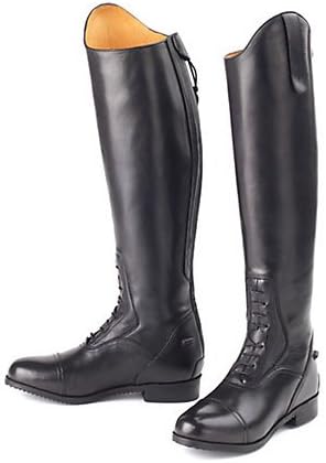 Traditional styling totally redesigned for ultimate comfort and ease of movement in this men's field boot. The new Flex system pattern design affords the rider the ultimate in movement with full flexion of the ankle area immediately with first wearing. Calfskin leather along with full grain glove leather lining creates a masterpiece of equestrian footwear. Added stretch panels on the inside of back zipper add supportive comfort and easy fitting at the calf. Twin side spur rests, classic toe cap styling, and elegant ripple sole add classic detailing at a remarkable price.