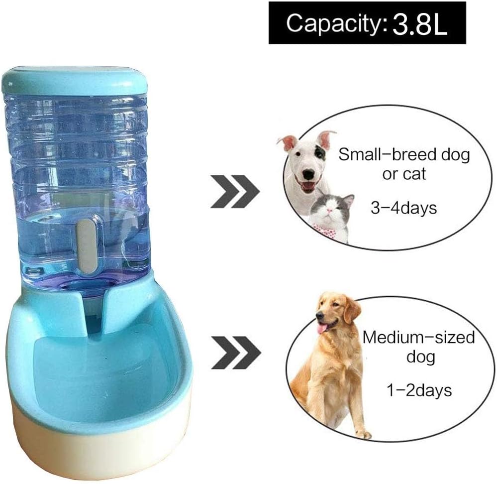 Pet Water Feeder, Pet Automatic Waterer, Plastic Water Dispenser For Dog & Cat, 3.8 Liters BETTER TASTING WATER: Dog and cat water bowl Dispenser provides pets with a continuous supply of fresh water, encouraging pets to drink more | EASY TO CLEAN: Wide-mouth bottle of the cat and dog automatic waterer dispenser is easy to remove from the base for convenient hand-washing | 3.8L LARGE CAPACITY: gravity supply principle, automatic feeding water dispenser device, saving time and safety. With our water feeder, you can be happy to work, date, rest, and don’t worry about your pet's drinking water.