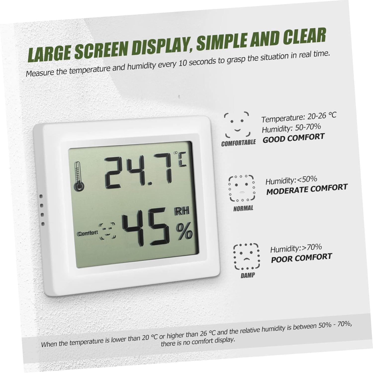 Package List 6 x Hygrometer Thermometers Characteristics - measurement cycle: 10 seconds room -Humidity measurement accuracy: ±5% humidity monitor -Humidity measurement resolution: 1% room hygrometer Humidity: humidity>70%, display: 2 humidity digital hygrometer -Color:White humidity measuring gauge Dry: Humidity<50%, display: 1 hygrometer - switching unit: ℃/℉ humidity meter -Comfort display range: digital thermometers - measurement accuracy: ±1°C indoor -Size: About 8.50X7.50X1.30cm/3.34X2.95X0.51in hydrometer for humidity Comfort 20-26℃/50-70%, display: 3 room monitor - measurement range: -10~60℃ digital -Material: ABS measuring tool - measurement resolution: 0.1°C (if the exceeds this range, it will display or LL) gauge -Humidity measurement range: 10%- -Due to its compact design, the room can be hung, attached, or placed directly on the table home hygrometer. -Multifunctional meter combines and hygrometer functions to provide an accurate measurement indoor hygrometer.Goods Informationhumidity sensor Meters with and humidity monitoring functions are very practical for various measurement needs. measuring tool Are you looking for a professional and practical multifunctional ? If yes, your search can stop here! Because our products can meet your needs.hygrometer for room Palm size, to place and install