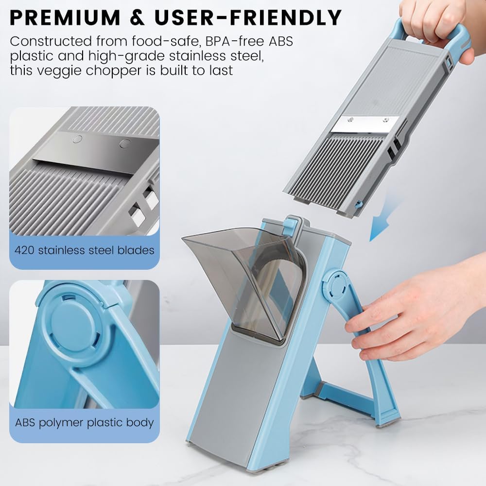Transform your kitchen prep work with this all-in-one mandoline slicer and vegetable chopper, designed to handle a wide variety of fruits and vegetables with precision and ease. Ideal for home cooks seeking restaurant-quality results, it effortlessly creates uniform slices, perfect fries, fine shreds for coleslaw, and consistent dices for salsas and stews. The robust construction ensures stability during use on various countertops, while the thoughtful safety features allow everyone to prepare ingredients with confidence. Beyond salads and fries, it’s excellent for prepping toppings for pizzas, garnishes for soups, and healthy snacks for the family. Durable, easy to clean, and simple to store, this compact kitchen chopping tool streamlines your cooking routine, turning time-consuming tasks into quick, enjoyable steps. Experience the convenience of a professional food prep accessory that delivers consistent results every time, making it an indispensable addition to your culinary toolkit.