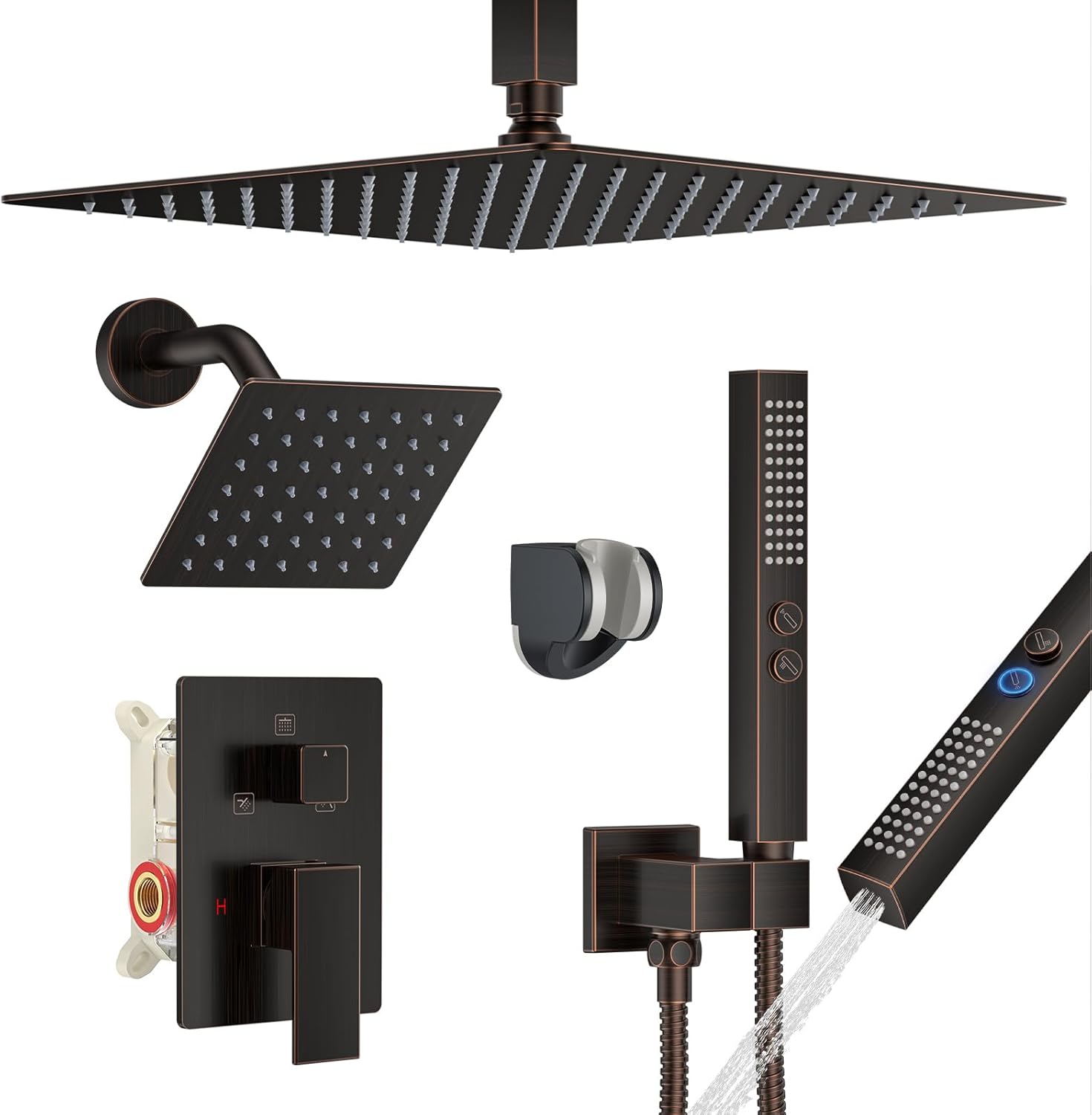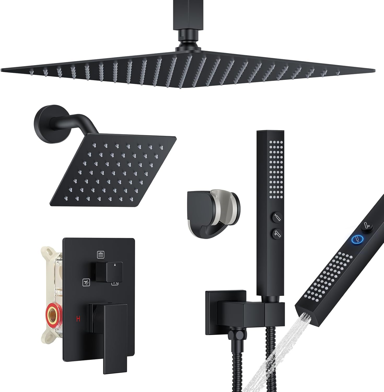 | Included Components | 12-inch Shower Head, 6-inch Angled Shower Head, Handheld Shower with 60" Hose, Installation Instruction, Shower Valve Tirm Kit |