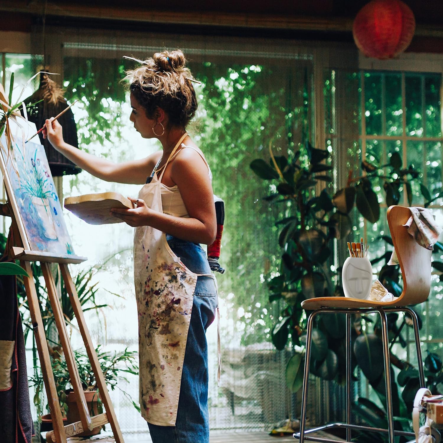 Are you looking for the right decorative accent for your living room? Then this unusual vase with a face design could be just the thing. The minimalist flower vase in the trendy boho style is made of ceramic and gives your home an individual touch. No matter whether you want to fill the ceramic vase with flowers or pampas grass or leave it alone, it always cuts a fine figure. Use the boho vase to store brushes and kitchen utensils.Flower vase in detail- Dimensions H x W x D: approx. 14.5 x 9.5 x 10.5 cm- Diameter of the opening: approx. 5,5 cm- Weight: approx. 450 g- Material: Ceramic- Colour: WhiteDecorative vase in unusual design- Unusual, aesthetic design with a face- Great decorative object in living room, bedroom, kitchen- Ceramic vase with multiple uses- For flowers, pampas grass, paint brushes, kitchen utensils- Bohovase made of resistant ceramicIncluded in delivery- 1x flower vase- Decorative objects are not included