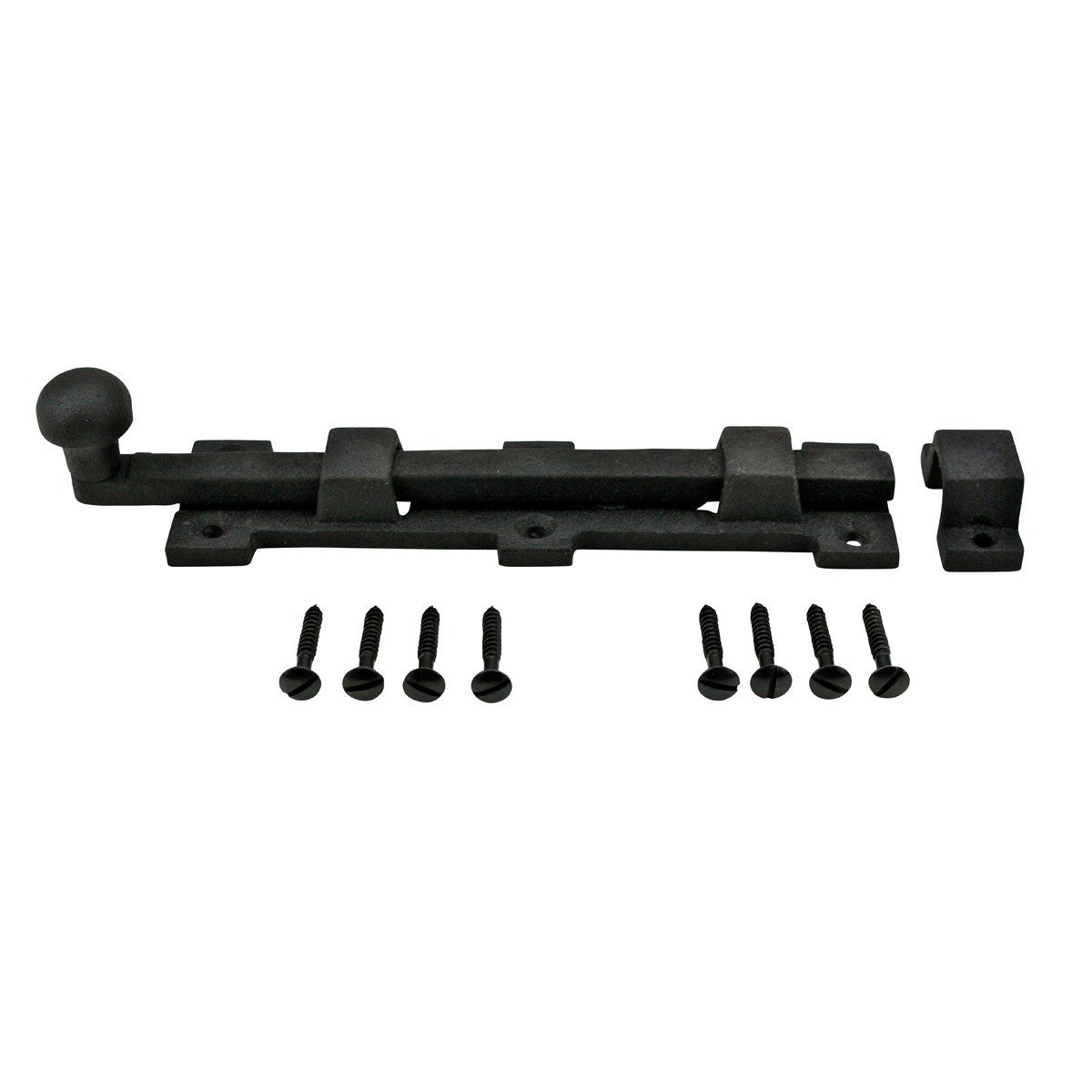 Upgrade your home with our Wrought Iron Ball Tip Style Sliding Bolt Cabinet Door Latch. Effortlessly achieve a timeless yet casual aesthetic with these beautiful sliding bolt door latch locks. Not only do they enhance the appearance of your apartment, but they also provide added security, privacy, and stability for your cabinets, doors, and windows. Constructed from sturdy wrought iron material and finished with a protective rust-resistant black powder coating, these sliding locks are built to last. Their versatile design allows them to be used in various applications, from preventing children from accessing cabinets to securing pet doors. With easy-slide functionality and included mounting hardware, installation is hassle-free. Our sliding bolt latch locks serve multiple purposes, from enhancing home security to keeping pets safe in the yard. Whether you need to prevent children from opening doors, secure cabinets, or reinforce pet doors, these versatile locks have you covered. For external use, we recommend using different screws for added durability. Renovators Supply Manufacturing stands behind the quality of our products, offering great value for your money. With a 60-day satisfaction guarantee and no fee for returns, you can shop with confidence knowing you're investing wisely in your home's security and style. Upgrade your home security and style with our Wrought Iron Ball Tip Style Sliding Bolt Cabinet Door Latch from Renovators Supply.