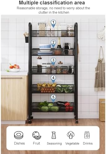 Introducing the versatile rolling storage cart, the ultimate solution for maximizing organization in your kitchen, bathroom, laundry room, or living space. This multifunctional cart is designed to help you declutter and beautifully display a variety of items, including fresh fruits, vegetables, snacks, and pantry essentials, enhancing your home’s efficiency without compromising style. Each detachable basket features a breathable design that promotes optimal air circulation, ensuring your produce stays fresh longer. Made from high-quality carbon steel, this cart offers impressive load-bearing capacity and is equipped with an anti-rust coating for durability, making it ideal for heavy-duty storage needs. The 360-degree wheels facilitate effortless mobility, allowing you to easily move the cart around your home to suit your needs. Available in configurations of 3, 4, and 5 layers, this adaptable kitchen storage cart allows you to select the perfect fit for your space. Additionally, it comes with hooks for added functionality, making it convenient to hang kitchen towels or utensils. Whether you need a food organizer in your kitchen or a stylish cart for your living area, this rolling storage cart seamlessly combines practicality with modern design. Experience the convenience of easy access to your essentials while maintaining a tidy and organized space. Add this innovative storage solution to your home today and discover how it can transform your daily routines. **Product Specifications:** - Name: Kitchen Storage Cart and Food Organizer - Material: High-quality metal frame and breathable mesh baskets - Structural Features: Multi-layer detachable storage rack with wheels and hooks - Available Layers: 3, 4, and 5 layers - Packaging Contents: 1 metal storage rack, 1 installation guide, and assembly tools.