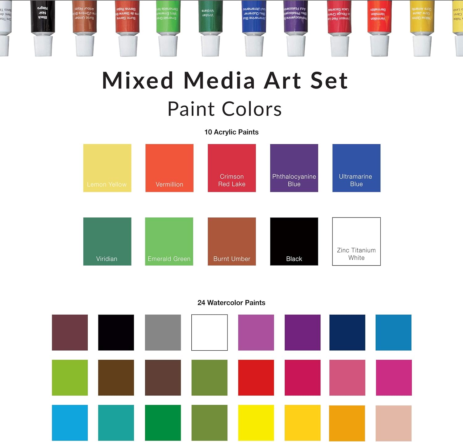 | Included Components | 24 watercolor cakes, 20 sheets of mixed media paper, 12 oil pastels, 11 color pencils, 10 acrylic paints, 2 brushes, 1 blending stump, 1 graphite pencil, 1 eraser, 1 sharpener, 1 instructional guide booklet, 1 wooden carrying case |