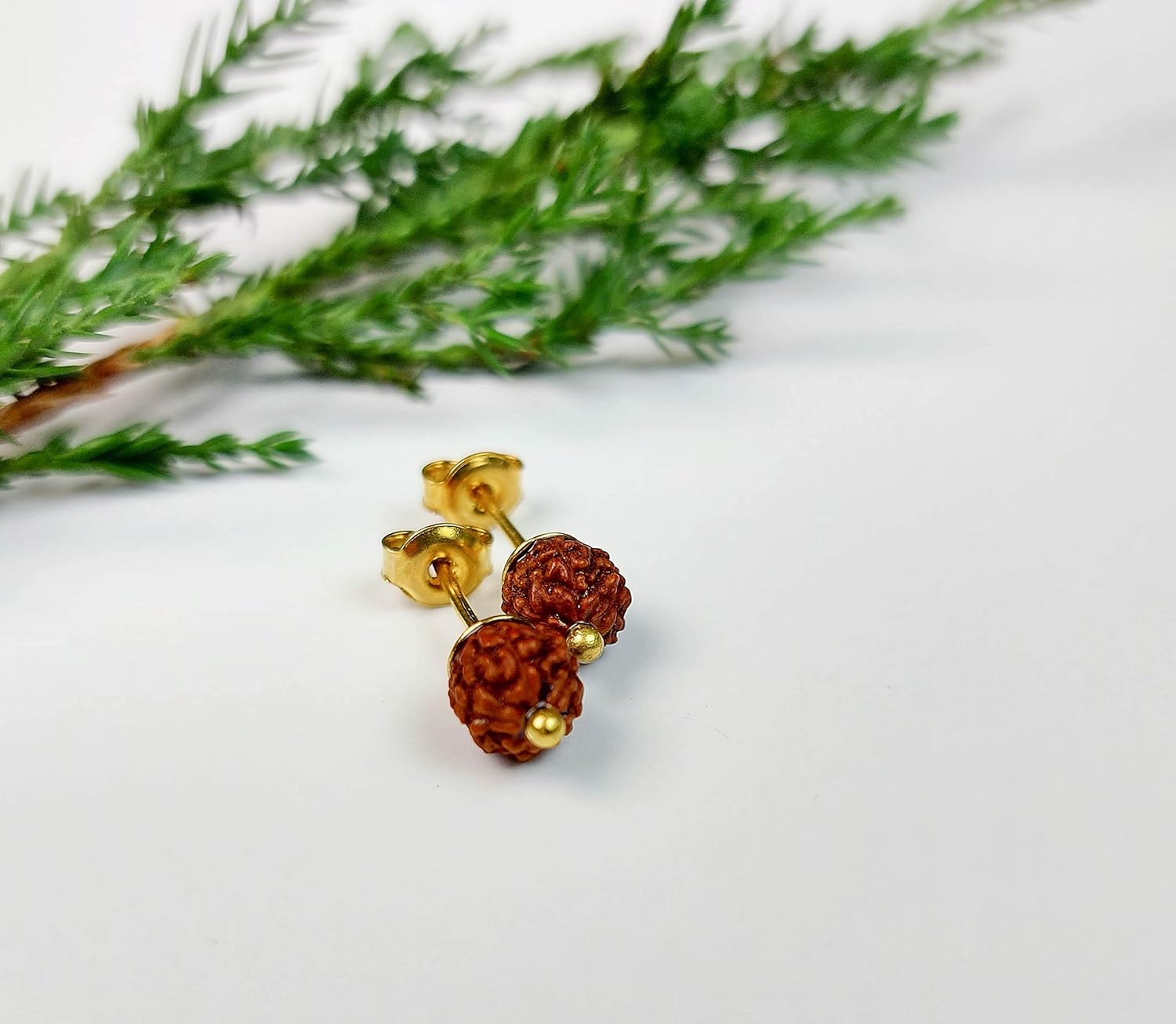 Tiny and simple but deeply spiritual stud earrings with genuine Rudraksha seeds. These earrings are made of genuine small 5 Mukhi (Panch) Rudraksha beads from India and high quality Sterling Silver or Gold plated sterling silver studs. *** Rudraksha is powerfull sacred seed, known as deep spiritual Hindu symbol. It means "eye of Shiva" from Sanskrit. By wearing these beads one gets tranquility, peace of mind, focus and concentration. This kind of state of mind is equally ideal for meditation. People can wear Rudraksha for protection, blessings, good fortune, health and well-being. In a spiritual sense, Rudraksha creates a cocoon of your own energy, and it is also a kind of shield against negative energies. In these earrings I use small genuine 5 Mukhi (Panch / five face) Rudraksha seeds. This is a bead of good luck and represents five forms of Lord Shiva. Five faced Rudraksha calms the mind of the wearer and protects him from all adverse situations. Wearer gains health and peace. Lowers blood pressure. This bead cures the negative effects of Planet Jupiter. Your order will be securely wrapped and sent to you with tracking.