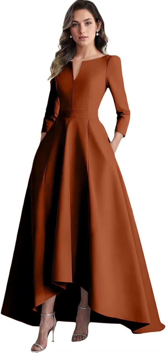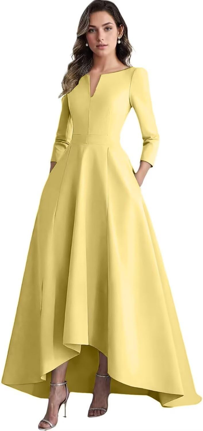 | Embellishment Feature | a-line formal dress, long sleeve mother of the bride dress, modest mother of the groom dress, pleats wedding guest dress, satin mother of the bride dress |