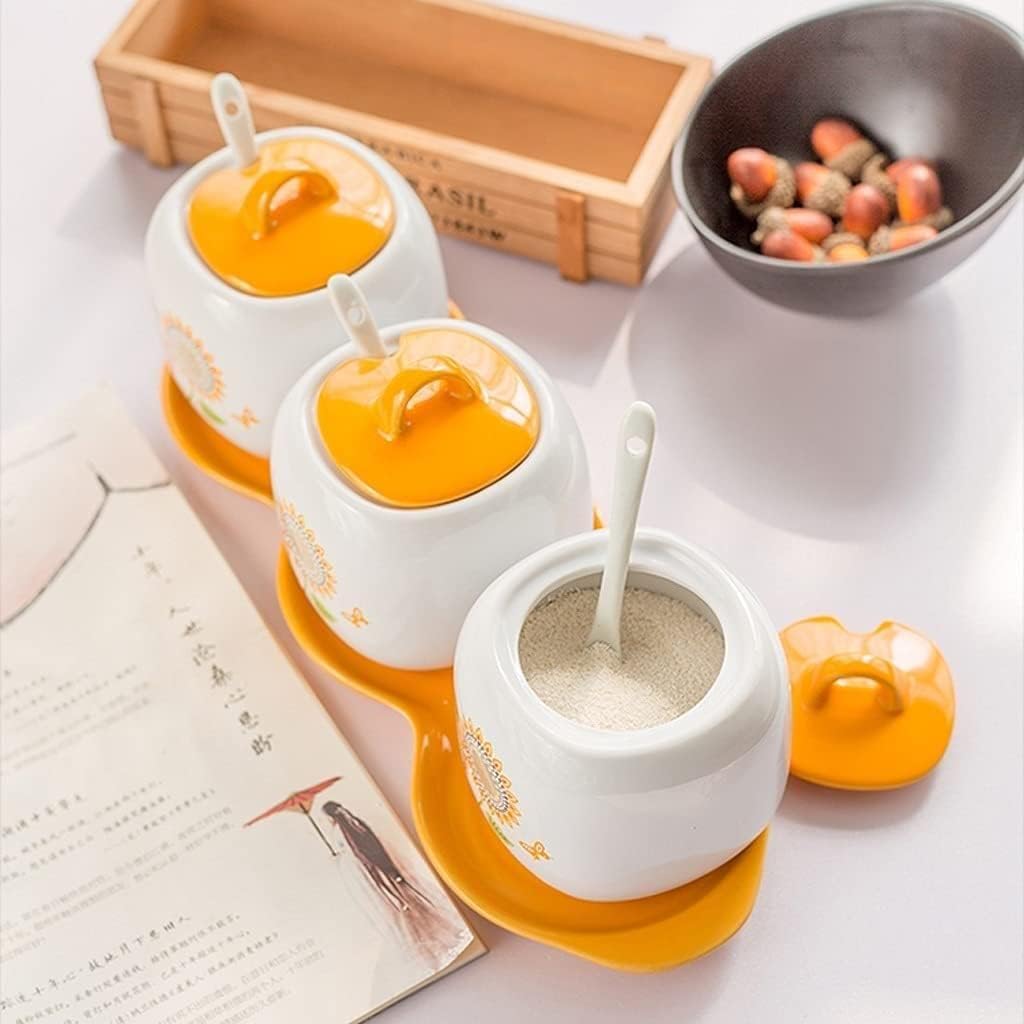 Warm Tips: We are really have confident with the spice containers which will be best choice,more confident. Product name: Seasoning Jar Set / Seasoning Box Set /Condiment Container Set / Spice Container Set Material: Ceramic Product style: with lid + spoon + tray Capacity: 400ML (13.5 ounces) Product Package Contents: 1* Seasoning Box Set Multifunctional: Suitable for storing sugar, pepper, salt, spices, coffee, seasonings and more, can be used in a variety of occasions, such as families, restaurants, parties, buffets. Nice Gift: The superior Spice Storage Canisters are a great choice to be a gift for your loved one. The glamorous porcelain sugar and creamer sets with exquisite appearance will complement on any home decor.