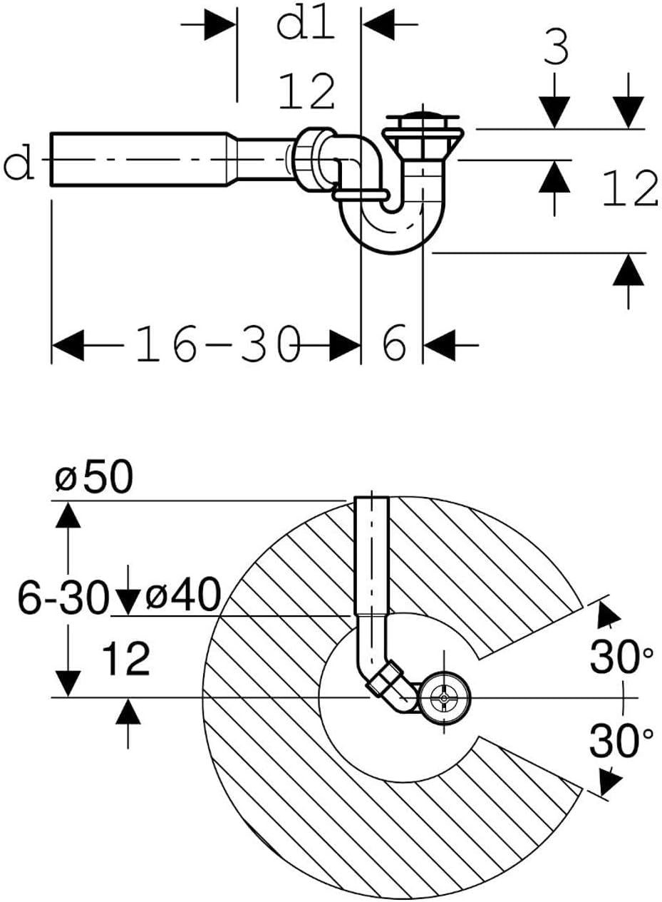 GEBERIT Basic body for shower and tub drain set for flat baths without overflow with drain 52 mm drain pipe 40/50 mm, drain valve chrome steel, seal for shell installation manufacturer: Geberit-PF factory number: 150058001