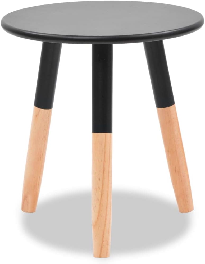 These high-quality wooden side Table s are charming pieces of furniture in the Scandinavian style. They will make a great addition to your living room or lounge room.Crafted from solid pinewood, the end Table set is strong and robust. The sturdy MDF Table tops provide a sTable and secure surface on which you can place your drinks, a fruit basket or vase or other decorative items. The Table s can also be used as nightstands, plant stands, telephone stands or coffee Table s. Assembly is easy.Delivery includes two side Table s.Color: BlackMaterial: Solid pinewood legs + MDF Table topLarger Table dimensions: 18.9" x 18.7" (Diameter x H)Smaller Table dimensions: 15" x 15.7" (Diameter x H)With foot padsEasy to assembleDelivery includes 2 side Table s