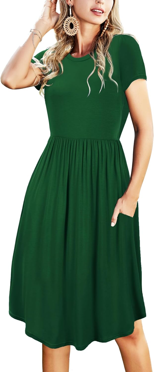 Discover the perfect blend of style and comfort with the Simier Fariry Modest Business Work Casual Dress. Designed specifically for women who value both professionalism and fashion, this short-sleeve dress is an excellent choice for teachers, travelers, and anyone looking for a versatile and flattering outfit.The A-line silhouette and empire waist create a figure-flattering look, enhancing your natural beauty while providing a modest and elegant appearance. The knee-length cut ensures that you feel comfortable and confident in any setting, from the classroom to a summer vacation. The practical slit pockets add a touch of convenience, allowing you to keep your essentials close at hand.Crafted from soft and comfortable knit fabric, this dress is easy to care for and maintains its shape, ensuring you always look your best. Whether you're dressing it up with heels for a formal event or keeping it casual with flats, this Simier Fariry dress is the perfect choice for any occasion. Embrace timeless elegance and versatility with the Simier Fariry Modest Business Work Casual Dress.