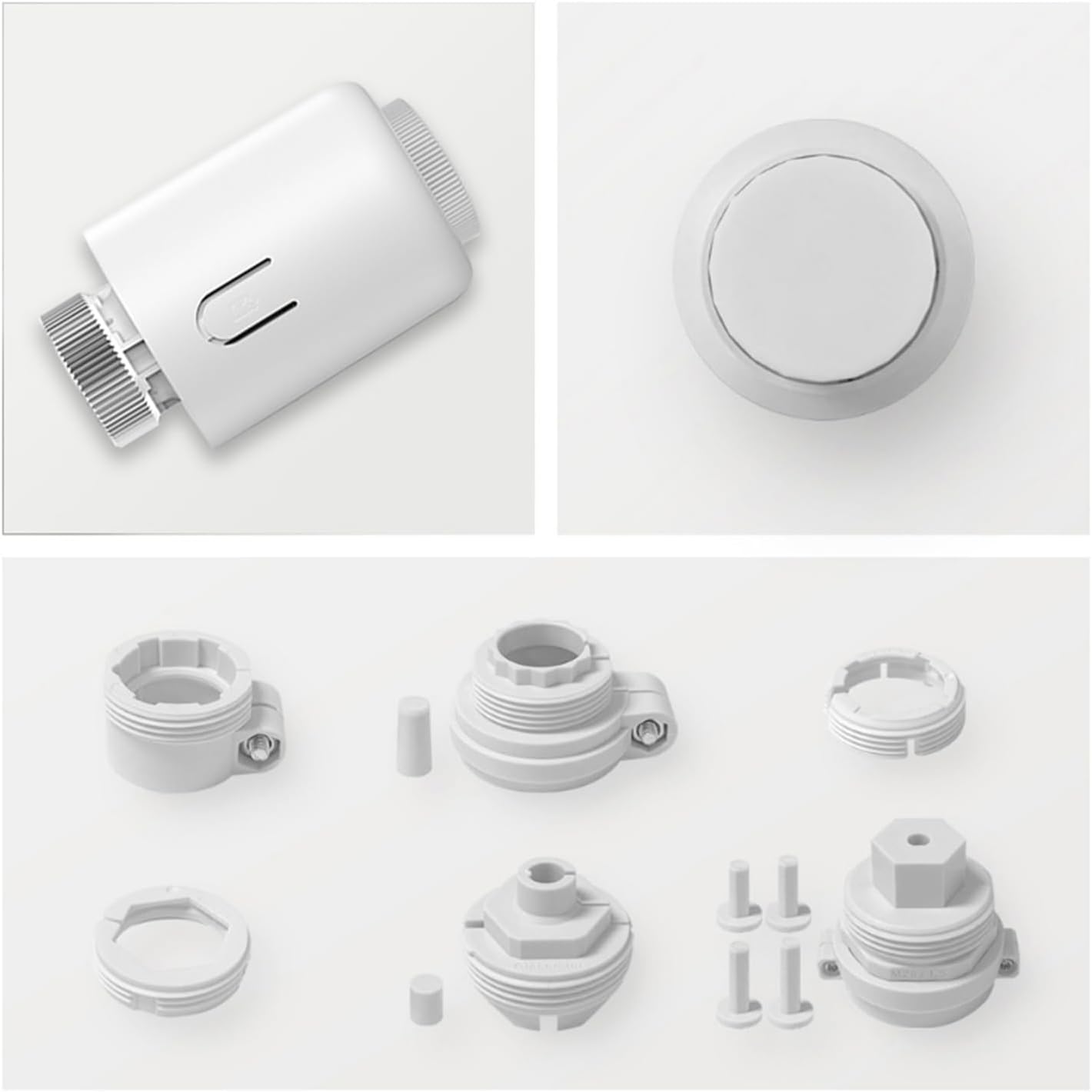 Specification: Item Type: Smart Radiator Thermostat Valve App: Tuya Smart/Smart Life App Material: ABS Gross Weight: 235g / 8.3oz Battery: 2 AA batteries (included) Set Temperature Range: 5~45℃ Display Temperature Range: 0~70℃ Ambient Humidity: 5~95%RF Storage Temperature: -5~45℃ Protection Grade: IP20 Product size: L: 74mm / 2.91in, D: D: 55mm / 2.16in Package List: 1 x Temperature Control Valve 1 x Instruction Manual