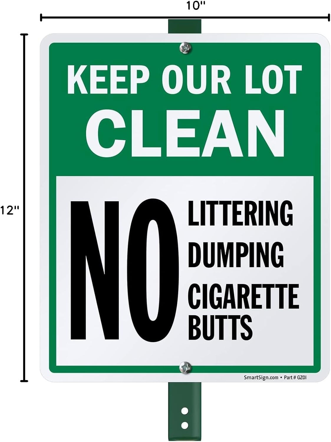 | Pre Printed Text | Keep Our Lot Clean - No Littering, Dumping, Cigarette Butts |