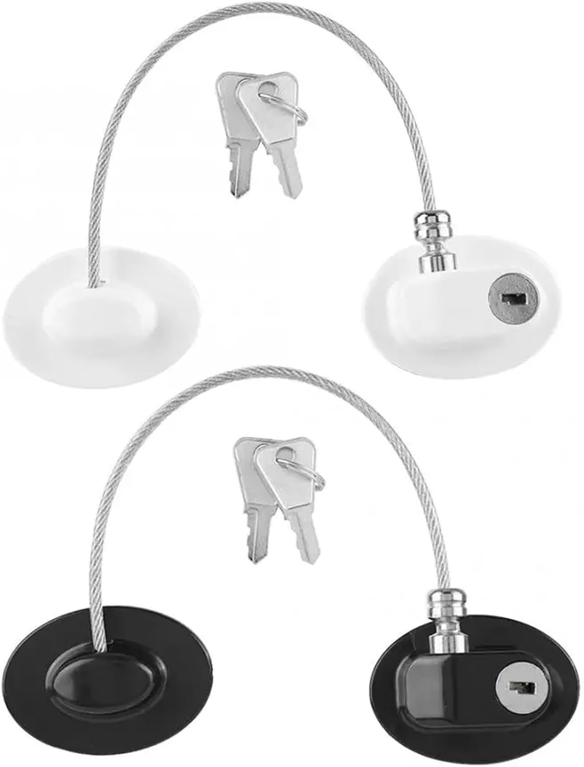 Deadbolts Specification: Type: Security Lock Lock material: high strength plastic reinforcement adhesive tape Cable material: stainless steel Color: white, black (optional) Package List: 1 x Security Lock 2 x Keys