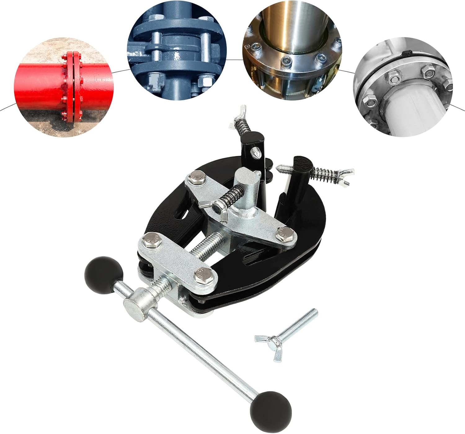 Specifications:- Material: Steel- Color: Black- Style: Modern- Assembly Required: No- Process: Powder Coated, Electroplated- Number of Items: 1- Clamping Range: 2.5-6.5cm/1-2.5in- Package Size: 26*23*10cm/10.24*9.06*3.94in- Product Size (H*W): 20*13cm/7.9*5.12in- Gross Weight: 3kg/6.61 lbs- Net Weight: 2kg/4.41 lbsPackage Includes:- 1* Pipe Alignment Clamp- 1* Screw