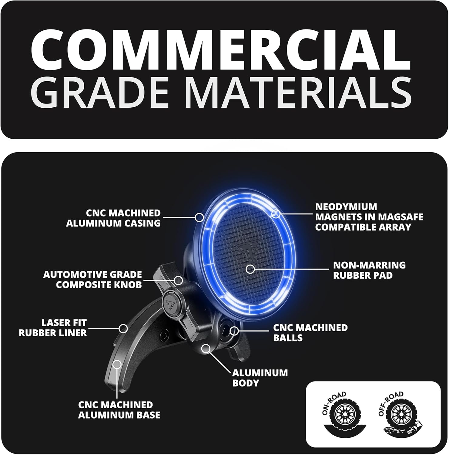 | Additional Features | 20 Series (20mm Ball and Socket), CNC Machined Aluminum, High Strength Neodymium Magnets, Non-Marring Rubber Pad |