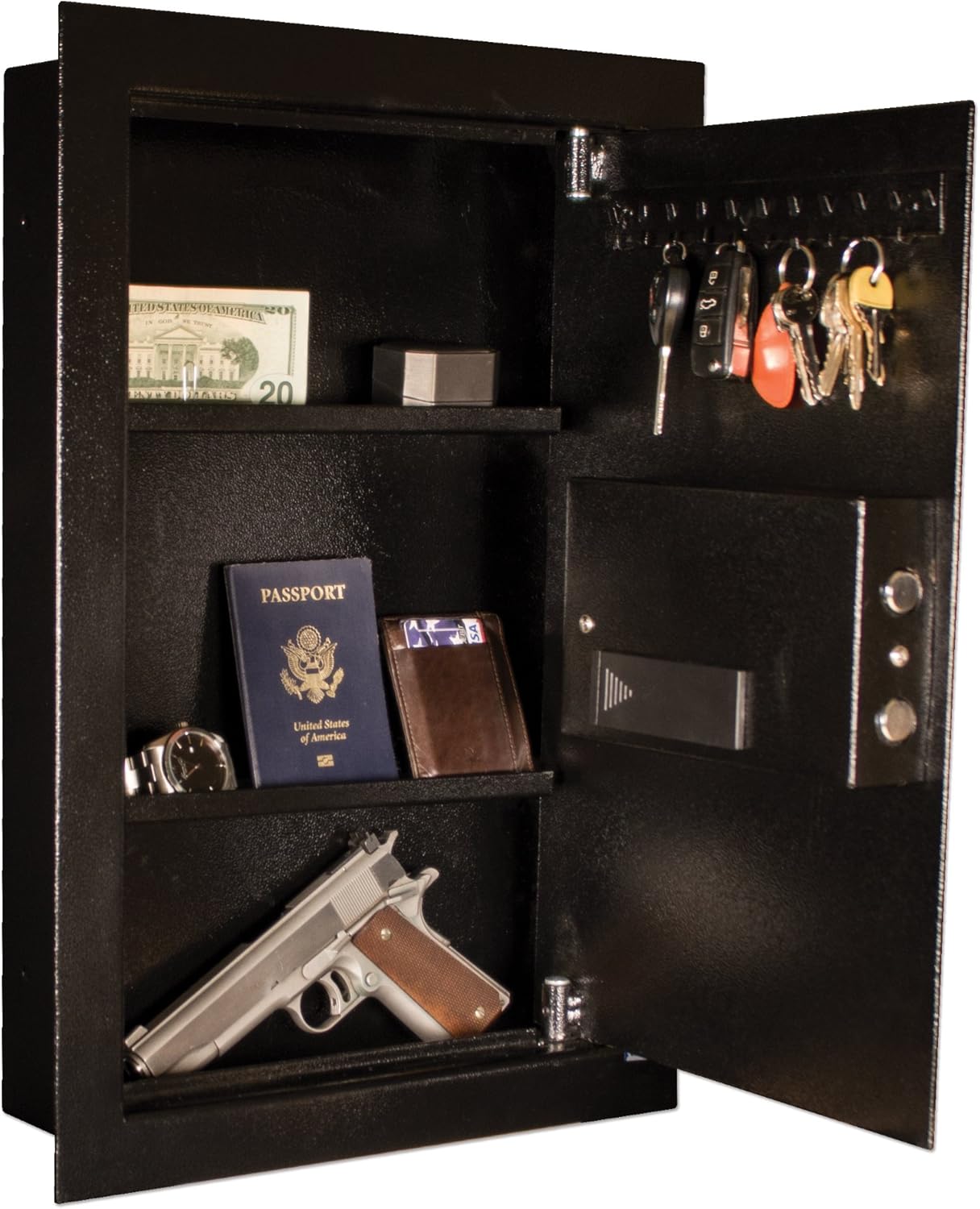 Tracker Safe's are built with one very important mission: to protect what matters most to our customers. As our world is a dangerous place, there is not a better or more reliable safe than a Tracker Safe to store the valuables that you cherish. The WS211404-E is designed to be mounted in between the studs on a wall. This safe is perfect for securing small high dollar items in a location you don't want anybody to know about.