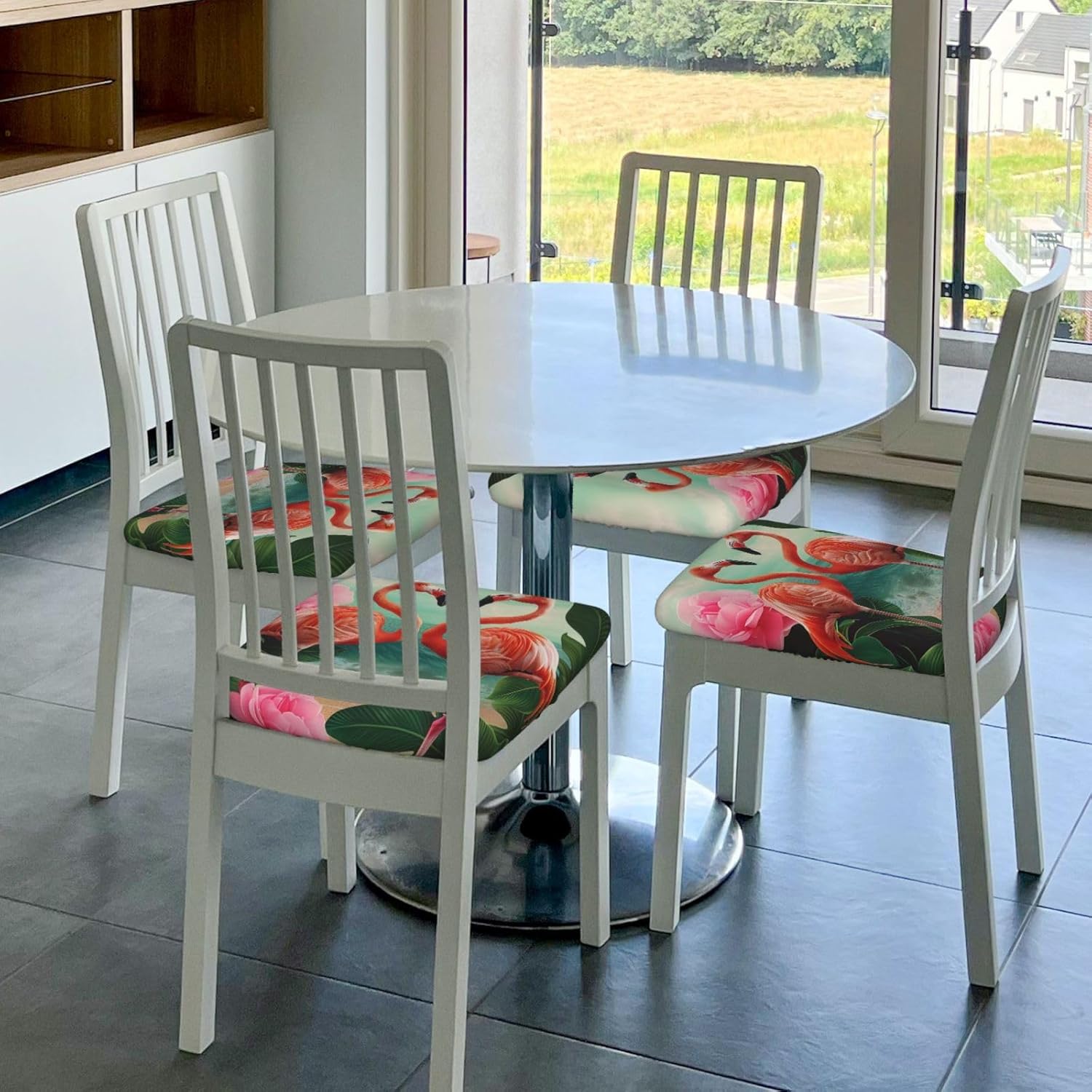 Our 6 Pcs set of square chair cushion covers are a wonderful addition to any seating area. Made of milk silk (94% polyester and 6% spandex), they offer a great combination of elasticity and comfort. With the unique design of elastic bands and 4 tie - straps (approx. 40cm each), these covers can be quickly installed on square chairs with sizes ranging from length and width of 35 - 48cm and thickness of 2.5 - 6cm. They are perfect for protecting your chairs from kids' doodles and pets' damage while enhancing the overall look of old chairs. These cushion covers can be used in various places such as offices, homes, cars, and wheelchairs, as well as for events like hotel functions, weddings, dinners, conferences, and family celebrations. What's more, they are easy to clean either by hand or gentle machine wash, ensuring they stay fresh all year round. They are also an ideal gift for your loved and colleagues.