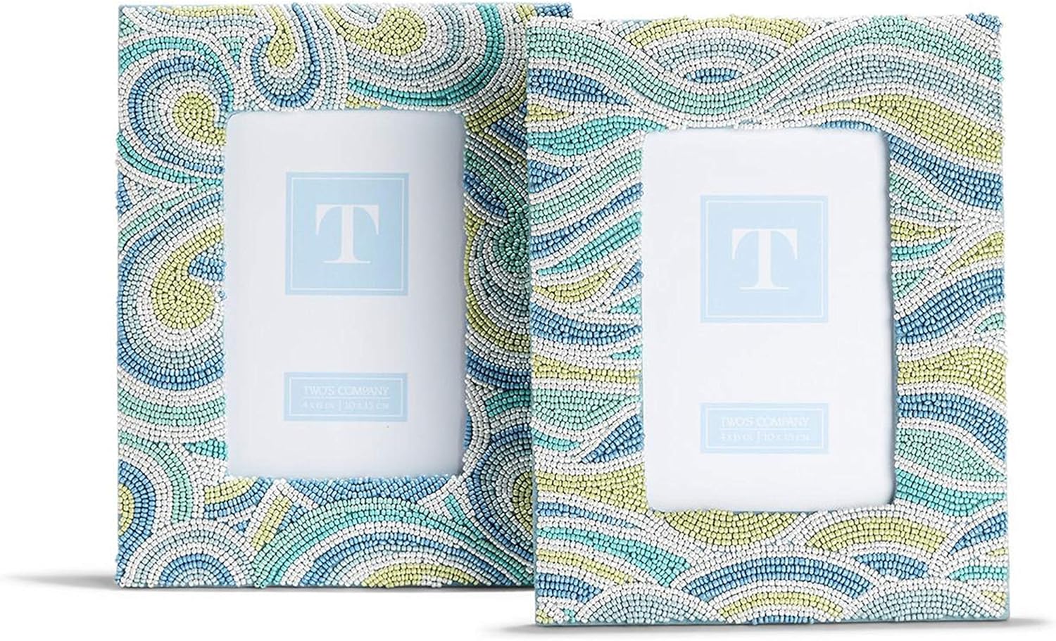 Set of 2 Making Waves 4" x 6" Beaded Photo Frame Assorted 2 Patterns (stands horizontally/vertically) - Glass Beads/Cotton/MDF