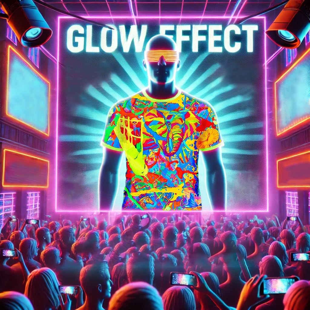 | Item Type Name | UV light glow T-shirt with vibrant neon graphic prints, blacklight-reactive design, short sleeves, regular fit cut, and soft cotton fabric. Perfect for festivals, rave parties, glow-in-the-dark events, and casual wear, this T-shirt combines comfort, durability, and bold style. Available in sizes XXS to XXXL, it’s designed to suit every body type while ensuring a standout look under UV light. A must-have for anyone seeking unique, eye-catching apparel with a modern edge." |