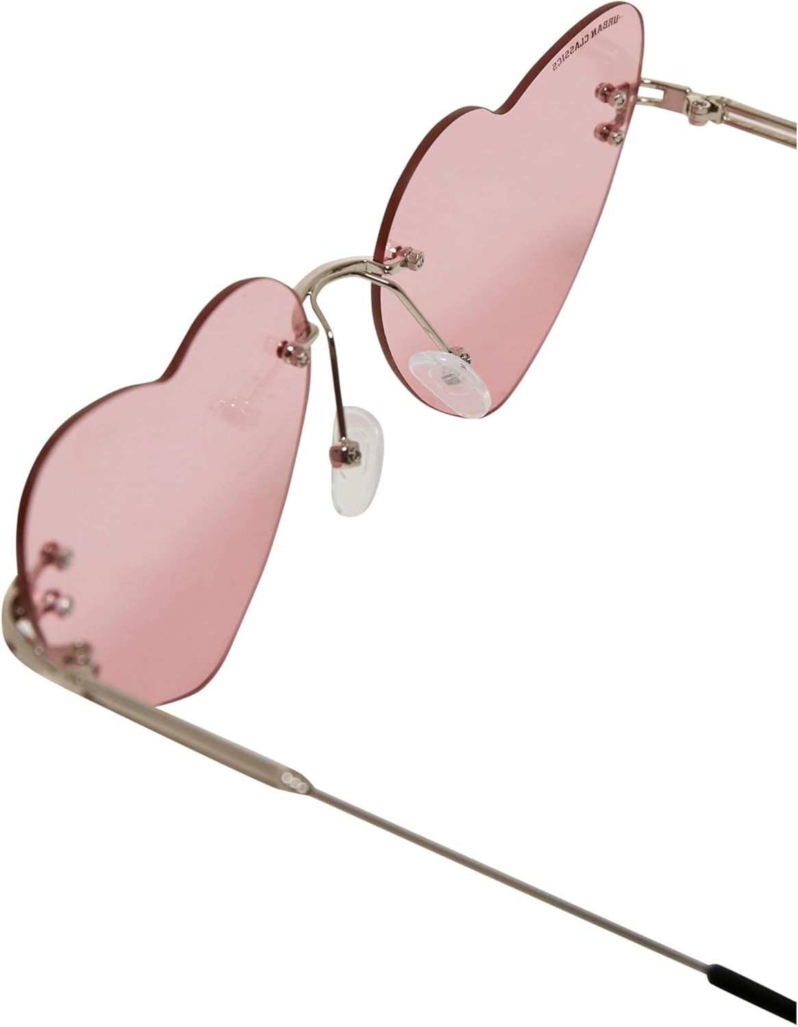 The design of these Urban Classics sunglasses is unique: the frameless lenses are designed in heart shape and are completed by a filigree nose bridge and delicate temples. The necklace fits perfectly, whose links are also designed as a heart design. The accessory, one size fits all, offers UV 400 protection and is made of polycarbonate, copper and stainless steel. The flexible nose pads bring comfort. The sunglasses are rounded off with their protective cover with drawstring and Urban Classics lettering.