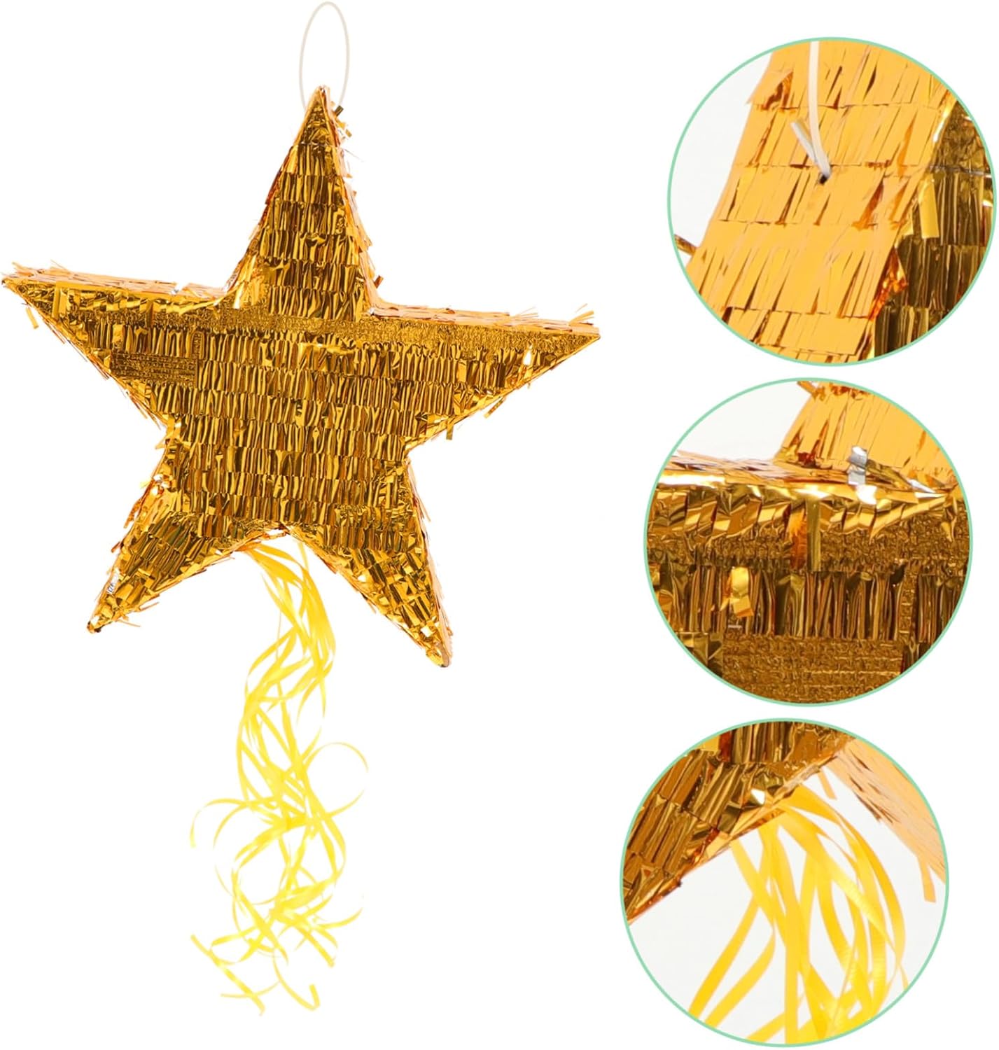 Package List 1 x Five-Pointed Star Pinata Features - Size: About 45.00X44.00X10.50cm/ 17.68X17.29X4.13inch carnival pinata. - Color: Golden Party Pendant. -Product Info:Pentagram Pinata - Material: Paper party decoration. -Very suitable for playing at holiday parties, birthday parties and festivals or celebrations pinata for party. -Funny and eye-catching design will be a favorite for of all ages and spice up your parties Funny Pinata. -This pinata will complete the fiesta, theme party, carnival, birthday party, celebration, and more carnival decor. -It features lovely shape design, unique and creative, which will greatly attract attention star decorations. -The traditional pinata is made into creative shape, which is very in line with the current trend festive decorations.Goods DescriptionCreative Pinata Pendant It is a creative pinata , which is made of paper material.Funny Pinata It is perfect for to play on the birthday party, festival, celebration and some other events.Event Pinata Decor Fill some , candy, chocolate, and then hit the pinata with , the will fall down