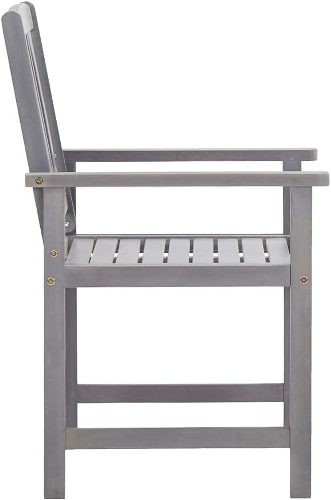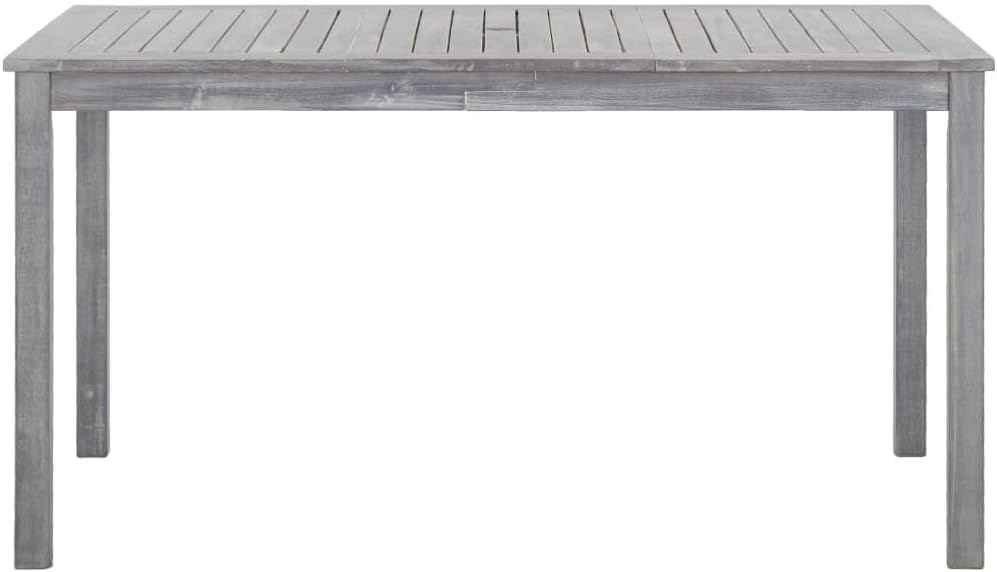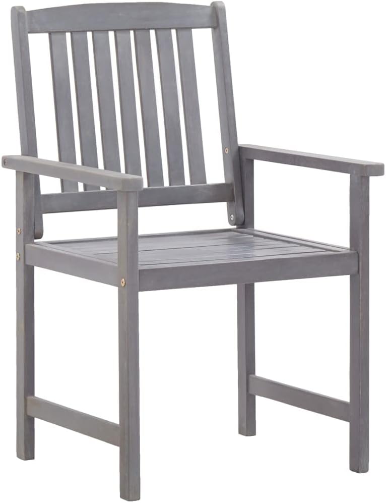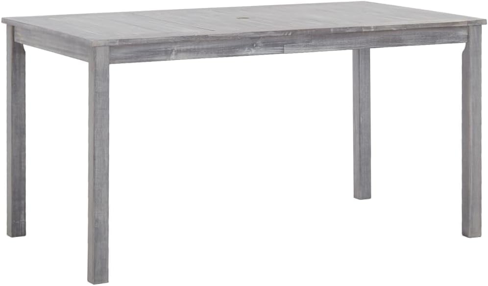 This 5-piece patio furniture set consists of 1 table and 4 chairs and will become the focal point of your garden or patio.This durable wooden dining set is made of solid acacia wood, which makes it sturdy and easy to clean. Thanks to a hole on the tabletop, you can easily place a parasol to create some shade. The armrests and backrest will bring you utmost seating comfort.Delivery includes 1 table and 4 chairs.Color: GrayMaterial: Solid acacia woodTable dimensions: 55.1" x 31.5" x 29.1" (L x W x H)Chair dimensions: 22.4" x 23.6" x 36.2" (W x D x H)Seat width and depth: 18.9"Seat height from the ground: 17.3"Armrest height from the ground: 24.4"Diameter of the parasol hole: 2"Delivery includes 1 table and 4 chairs