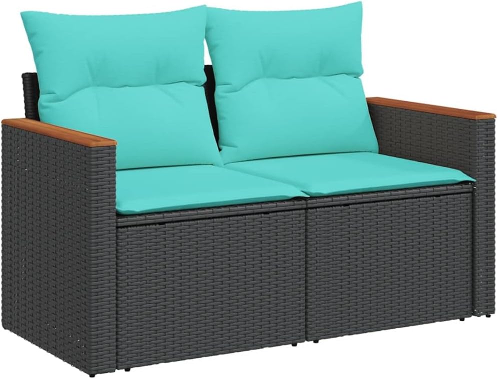 This 9-piece patio sofa set is spot on for creating a stylish and comfy outdoor lounge. Its modular design lets you set it up however you fancy, whether that's on a balcony, terrace, or in a garden. With its smart black and blue look and woven poly rattan, it not only looks great but also adds a modern touch, encouraging friends and family to come together and enjoy sunny days in style.Modular Flexibility: You can tweak the layout to fit your space just right, making it great for small hangouts or big parties.Cozy Seats: Each seat has thick, comfy cushions covered with durable, removable fabric that’s easy to clean, keeping everything looking fresh.Strong Build: Made from weather- materials, this sofa set can handle the elements while staying in top shape.Sneaky Storage: Hidden compartments add practicality, great for tucking away cushions or other outdoor bits.Versatile Use: Handy for all outdoor spaces, this set can spice up your balcony, terrace, or garden, providing a fab spot for chilling and having a natter.Color: Black Shape: RectangularMaterial: Synthetic Poly RattanFinish: Powder-Coated Indoor/Outdoor: Indoor / OutdoorCover Included: NoRoom: Garden and TerraceHeadboard Included: NoCapacity: 242.5 lb per seatMaximum Weit: 242.5 kgDimensions: 9.6 x 9.6 x 10.7 in (W x L x H)Seat Depth: 21.7 inSwings: NoLadder: NoBrand: vidaXLDelivery Contains: 1 x Corner seat with storage function and water- bagAssembly Required: YesSKU: 3226057EAN: 8721012830233