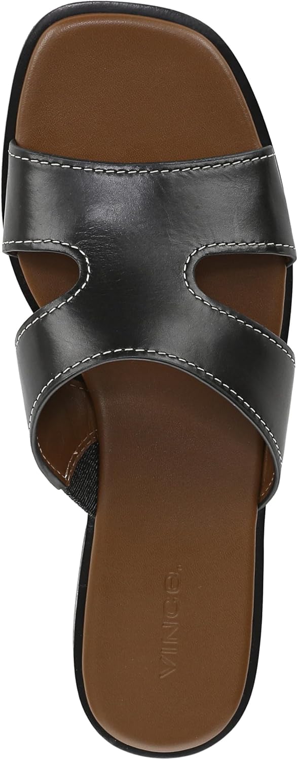 Women’s slide sandals with thick cutout straps, stitch detailing, and effortless comfort. Leather upper and lining responsibly sourced from Leather Working Group certified tanneries material. Slips on. Open square toe. Flat heel measures 0.50”. Professional clean only. Imported.