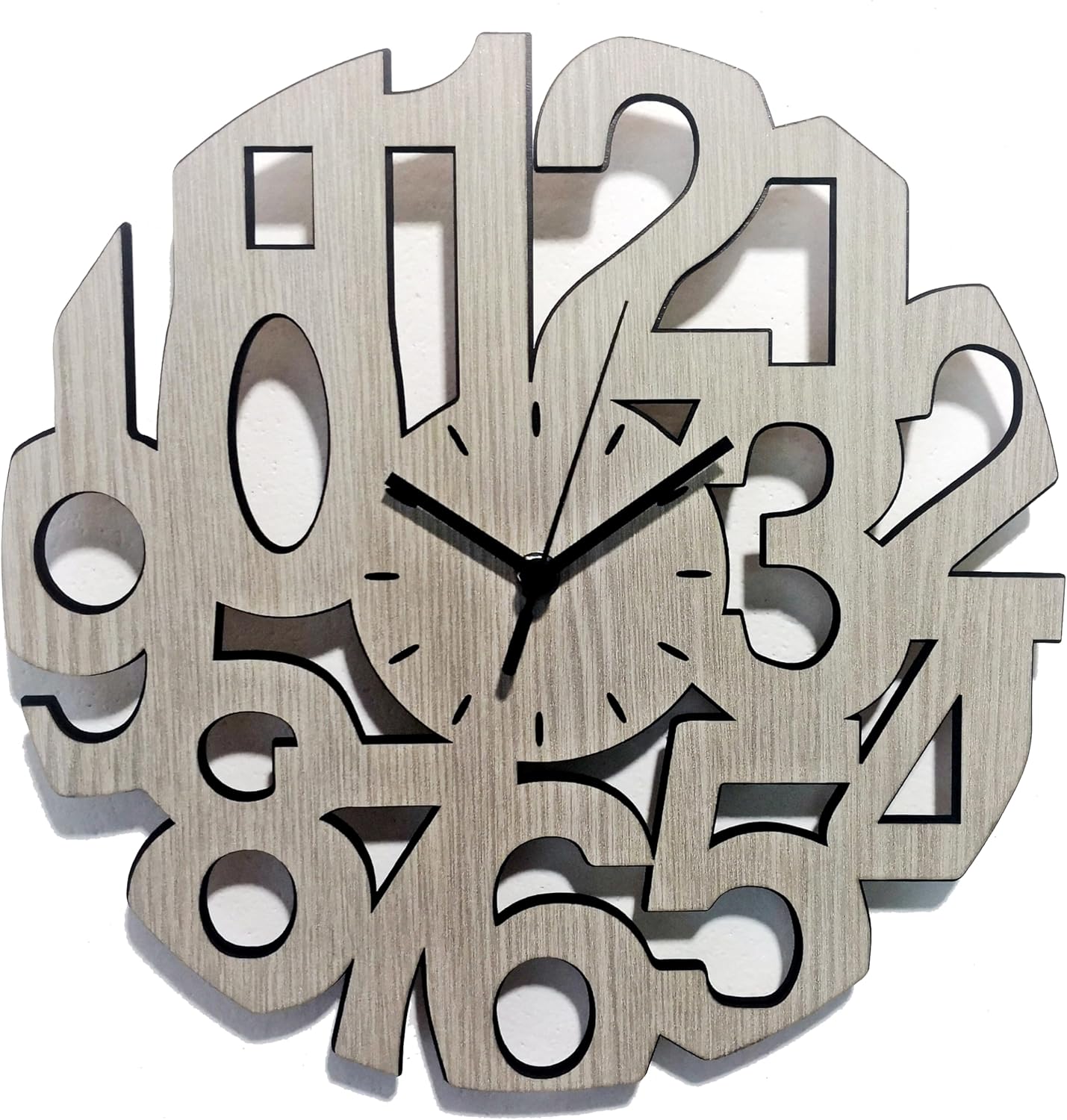 Elegant wall clock with a modern and minimalist design, made of MDF wood. This analog clock fits perfectly into any environment in the home, from the living room to the kitchen, from the study to the garage. The most notable feature is its quiet movement that ensures a peaceful atmosphere without the annoying ticking. The dial features large, clearly visible numerals arranged in a circular manner, offering excellent readability from every angle. Operated with one AA battery (not included) and easily mounts to the wall with the handy hook included. Its casual style and round shape make it a versatile piece of furniture, suitable for both modern and classic environments. Made in Italy by Instant Karma Clocks, this watch is designed for indoor use and is an excellent choice for those looking for a functional item with a contemporary design twist. The weight of 350 g ensures optimal stability on the wall.
