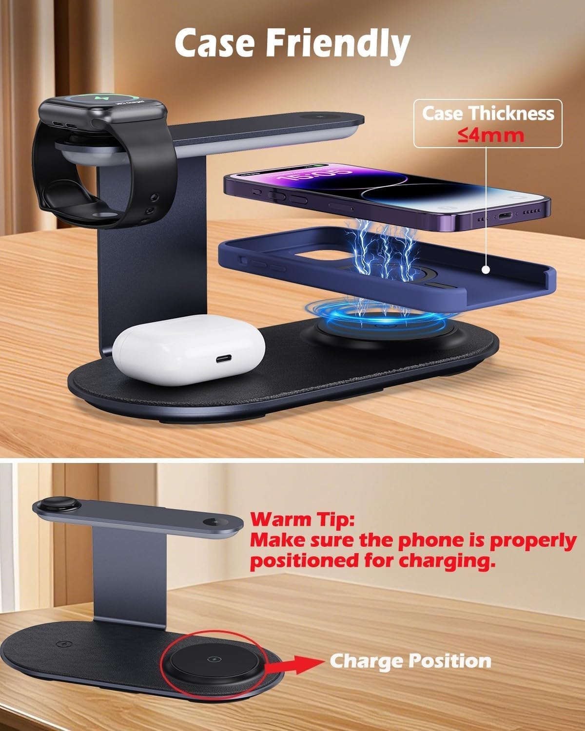 | Compatible Phone Models | i Phone Series:i Phone 17 Pro Max, i Phone 17 Pro, i Phone Air, i Phone 17, i Phone 16 Pro Max, i Phone 16 Pro, i Phone 16 Plus, i Phone 16, i Phone 15 Pro Max, i Phone 15 Pro, i Phone 15 Plus, i Phone 15, i Phone 14 Pro Max, i Phone 14 Pro, i Phone 14 Plus, i Phone 14, i Phone 13 Pro Max, i Phone 13 Pro, i Phone 13, i Phone 13 Mini, i Phone 12 Pro Max, i Phone 12 Pro, i Phone 12, i Phone 12 mini, other phones with wireless charging function; Air pods: Air pods 4, Air pods 3, Air Pods Pro 2, Air Pods Pro; Galaxy Buds/Galaxy Buds+; i Watch Series: 11/10/9/8/7/6/5/4/3/SE/Ultra1/ Ultra 2 |