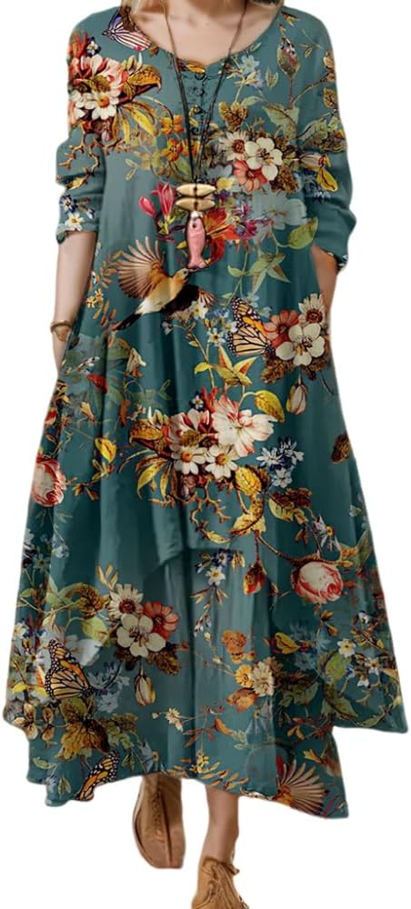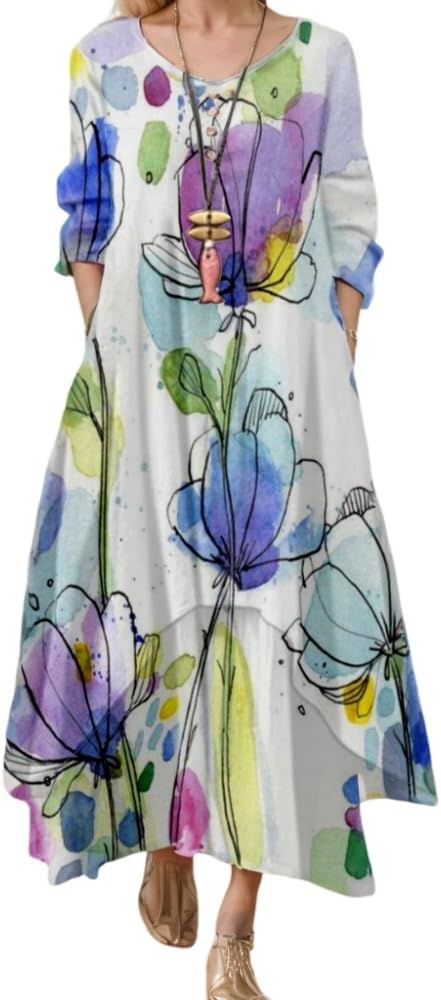 ------------------------------------------------------------------Welcome to TIAFORD------------------------------------------------------------------ Title:. Details: Category:Dress. Neckline:Round Neck. Dress length:Long dress. pattern:Bohemian Floral Printed. Theme: Spring, Summer, Fall. Thickness: Lightweight. Occasion: Daily,Work,Shopping,etc. Material:Linen. Season: Suit for spring/summer/fall. Package: 1 x dress. Notes: 1. Since everyone has their own body shape and measurements, we recommend that you compare your own with our size chart before purchasing. 2. According our customers suggestion, so we enlarged the size, please choose the size you wear usually. 3. If you have any questions, please inform us. Advantage: 1. Very easy to take care of but comfortable and nice to wear anywhere. 2. So cute and comfy. Slip on, stretchy, lightweight material but not see through. Can dress it up or down. Can pack and won’t wrinkle. 3. use it as a normal dress in any weather.