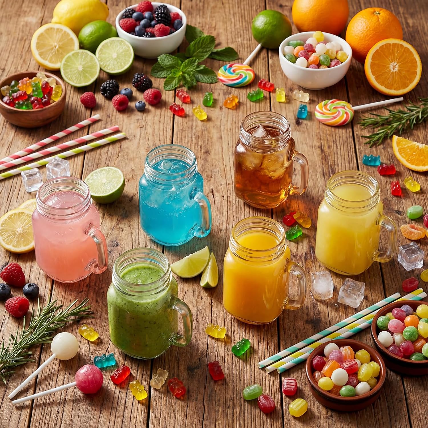 Features: Fun and Functional Design Each mini mason jar with handles offers more than just aesthetics. These jars double as shot glasses, drink containers, or holders for dessert and condiments. Their handles provide a comfortable grip, making them nice for both kids and adults at any gathering Bulk Set for Big Gatherings This package includes 36 pcs mini mason jars with handles, ensuring you're well-equipped for any event, from weddings to casual family gatherings. These shot jars with lids are a must-have for anyone looking to elevate their hosting game with colorful and reusable options Specifications: Material: glass Color: blue, purple, red, green, yellow, pink Size: 2.4 x 1.9 x 1.4 inches Package includes: 36 pcs mini mason jars with handles and lids Notes: Manual measurement, please allow slight errors on size. The color may exist a slight difference due to different screen displays.