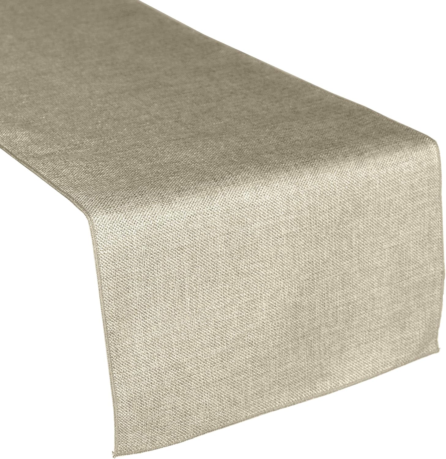 Faux Burlap Table Runner. This is a medium weight material that mimics the burlap look without the itchy burlap feel. Multiple Sizes and Colors Available. Easy Care Machine Washable. Made in America.